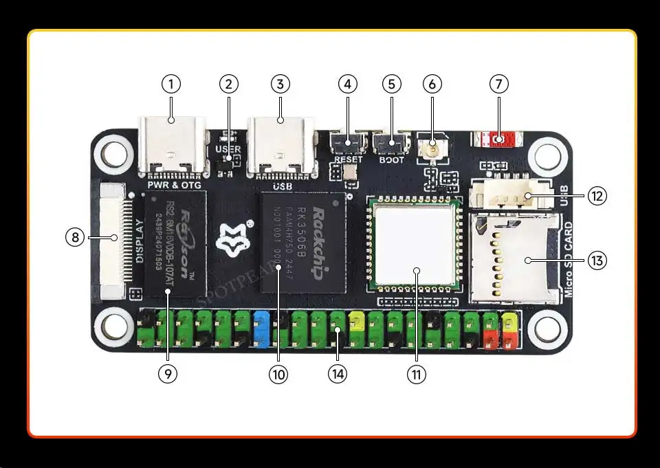 Integre ranura para tarjeta Micro SD, interfaz DSI, interfaz HOST USB-C e interfaz HOST USB MX1.25