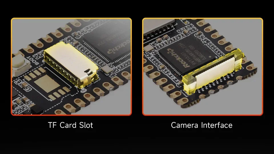 Integra ranura para tarjeta TF, interfaz de cámara y puerto Ethernet