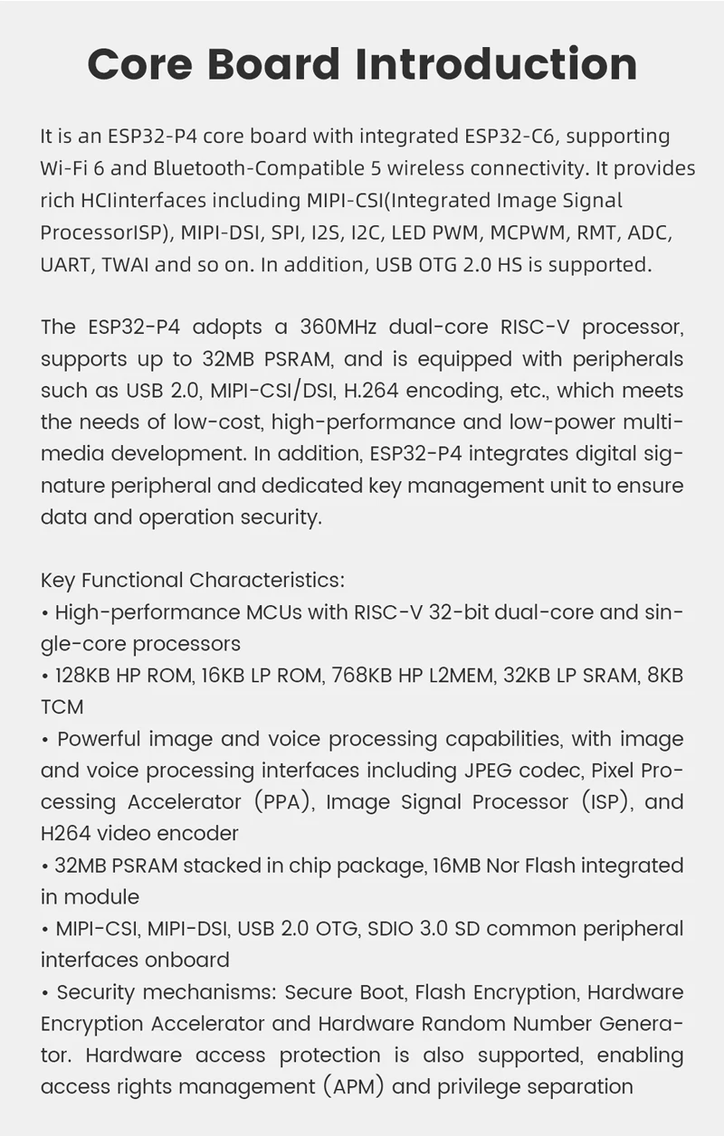 Comprar Placa de desarrollo de módulo ESP32P4 Soporte de alto rendimiento Wi-Fi 6/Bluetooth 5/BLE basado en ESP32-P4 y ESP32-C6
