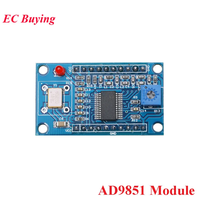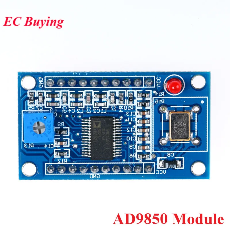 Direct Digital Synthesizer (DDS) es en realidad un divisor de frecuencia: divida el reloj del sistema (SYSTEM WATCH) programando la palabra de control de frecuencia para generar la frecuencia requerida.DDS tiene dos características destacadas.Por un lado, DDS funciona en el dominio digital.Una vez actualizada la palabra de control de frecuencia, la frecuencia de salida cambiará en consecuencia y su tasa de salto de frecuencia es alta.Mayor), resolución de alta frecuencia.La estructura interna del DDS se divide principalmente en 3 partes: acumulador de fase, conversión de amplitud de fase, convertidor de digital a analógico (DAC).Características:El módulo puede generar ondas sinusoidales y cuadradas, 2 salidas de ondas sinusoidales y 2 de ondas cuadradas.AD9850: 0-40MHzAD9851: 0-70MHzDespués de que la frecuencia sea de 20 a 30 MHz, la armónica se vuelve cada vez más grande y la forma de onda se volverá cada vez más sucia.Onda cuadrada: 0-1MHzUtiliza un filtro de paso bajo de 70 MHz para mejorar la relación SN de la forma de ondaDAC de 10 bits, palabra de control de frecuencia de 32 bitsEl voltaje de entrada de referencia del comparador es generado por una resistencia variable.Ajustar esta resistencia puede obtener diferentes ondas cuadradas de ciclo de trabajo.Nota: En el caso de emitir una onda sinusoidal, conéctelo al puerto IO de la salida de onda cuadrada y ajústelo directamenteEl potenciómetro azul puede emitir una onda cuadrada.El módulo AD9850 utiliza cristal activo de 125 MHz, el módulo AD9851 utiliza cristal activo de 30 MHZLas principales diferencias de AD9850 y AD9851:La frecuencia de reloj del AD9850 es de hasta 125 MHz y la frecuencia de reloj del AD9851 es de hasta 180 MHz (30 MHz * 6).La frecuencia de salida más alta AD9851 es mayor que AD9850.AD9850 no tiene 6 octavas, AD9851 sí