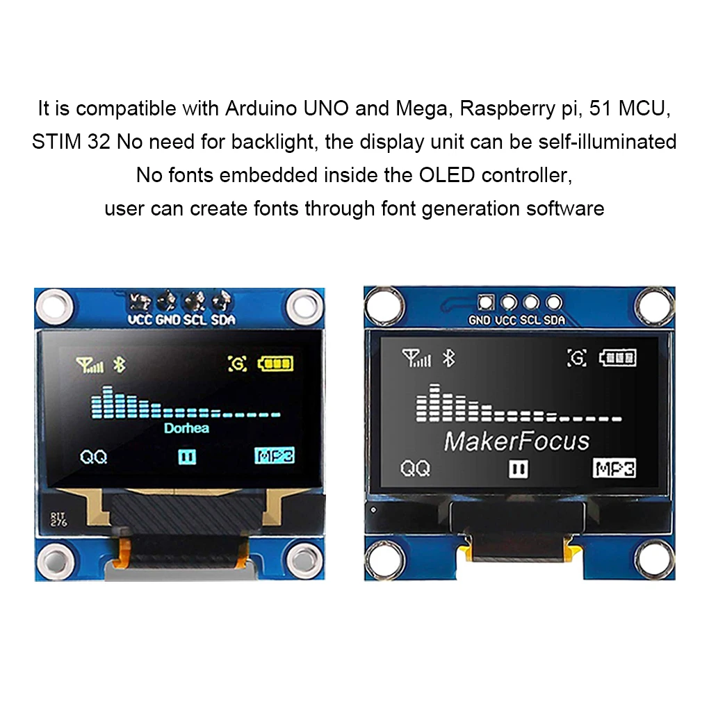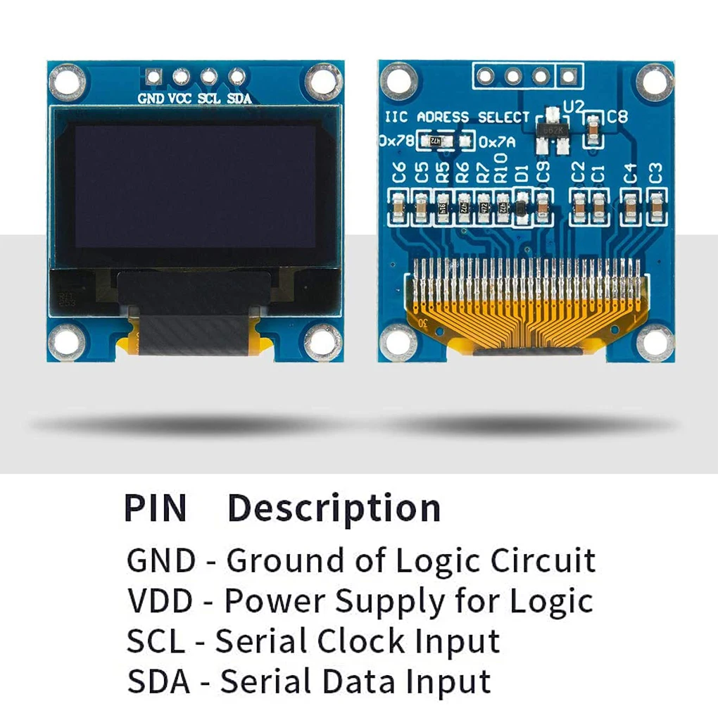 Cómodo de usar: este módulo de pantalla de 0,96 pulgadas está diseñado con un puerto de comunicación I2C/IIC y es fácil de conectar.