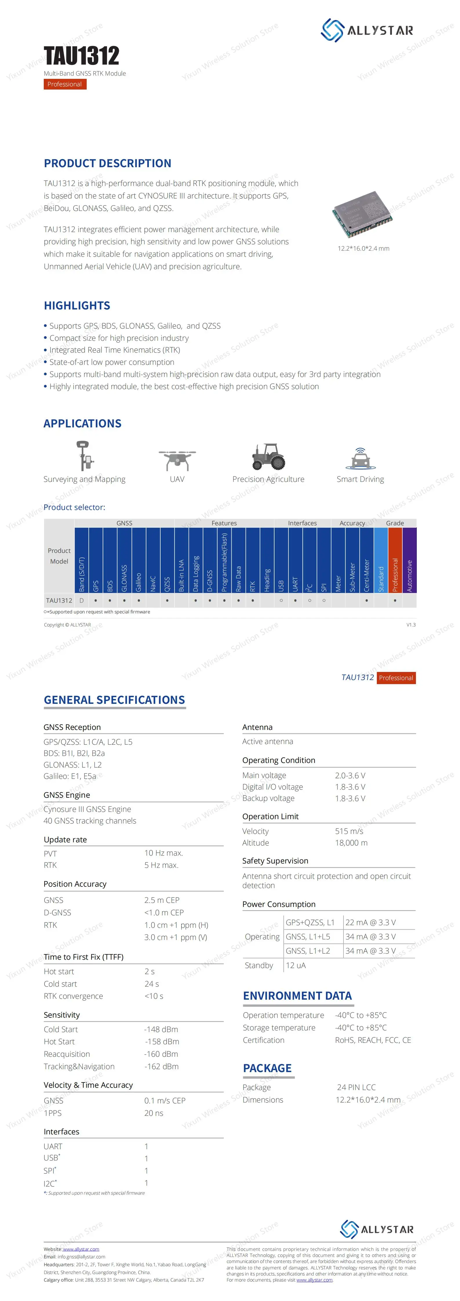 Placa de desarrollo de módulo de posicionamiento RTK de doble banda L1 L2 L5 de alto rendimiento con Allystar TAU131 GPS BD GLONASS Galileo QZSS