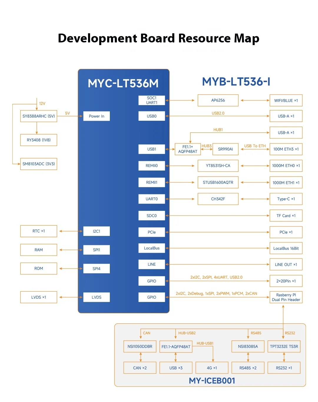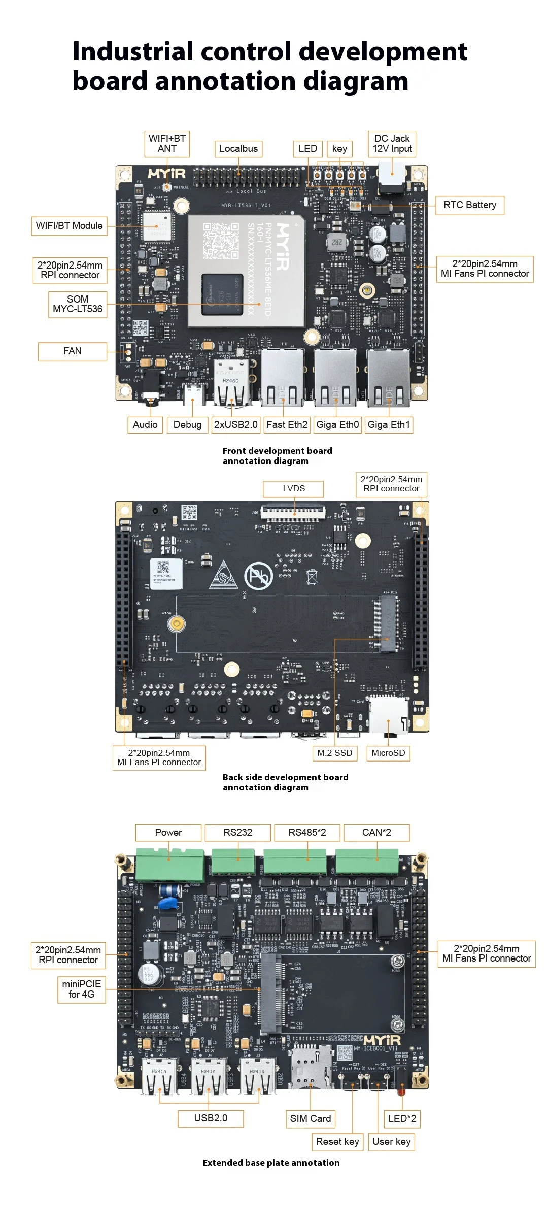 Placa de desarrollo MYD-LT536, 17 puertos serie, 4 puertos CAN, placas de desarrollo doméstico de grado Industrial, alta potencia de computación
