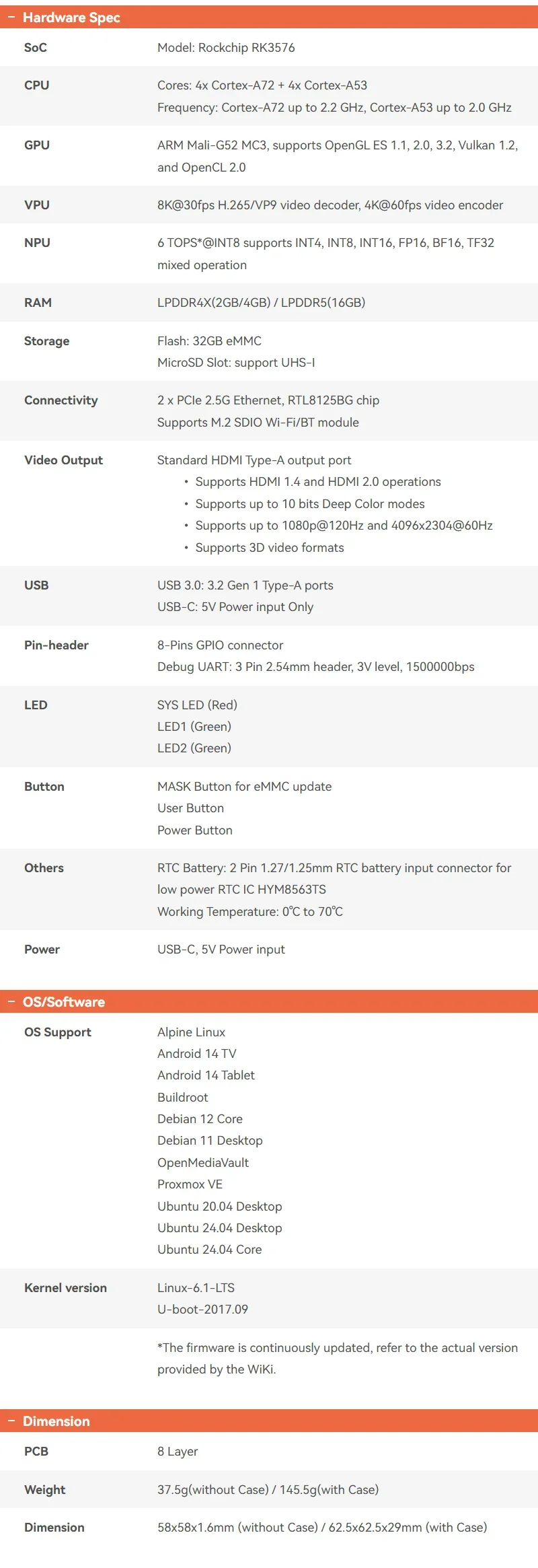 Placa de desarrollo Nano Pi R76S RK3576 amigable 2/3/4/16GB RAM 0/32/64GB EMMC LPDDR5 puerto de red Dual 2,5 HDMI AI despliegue