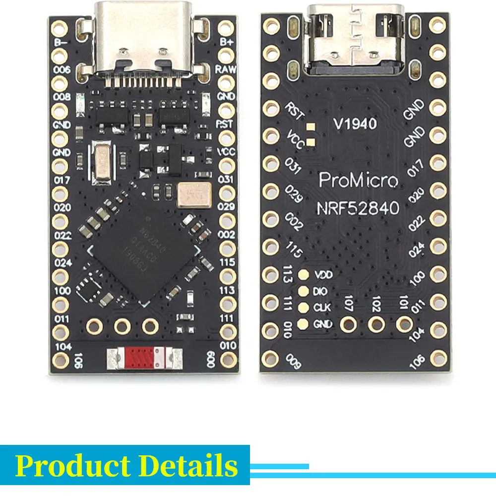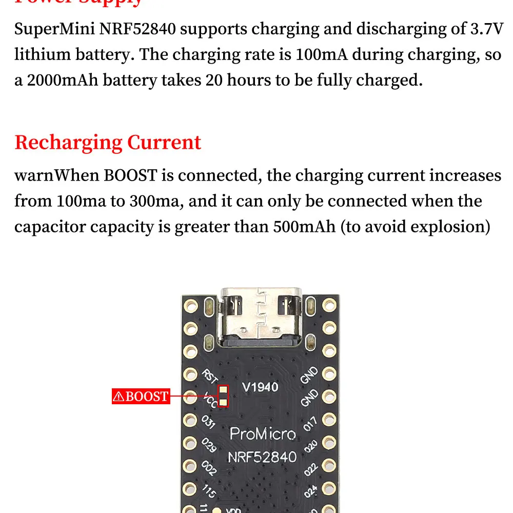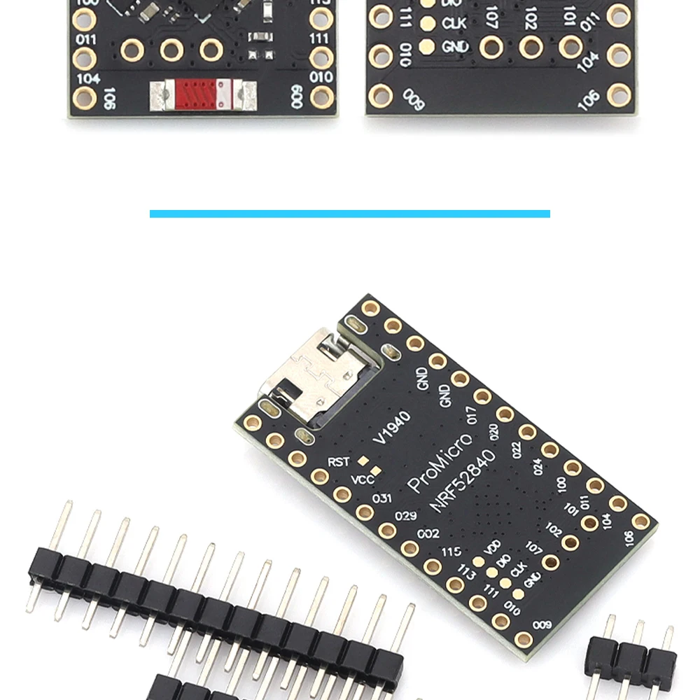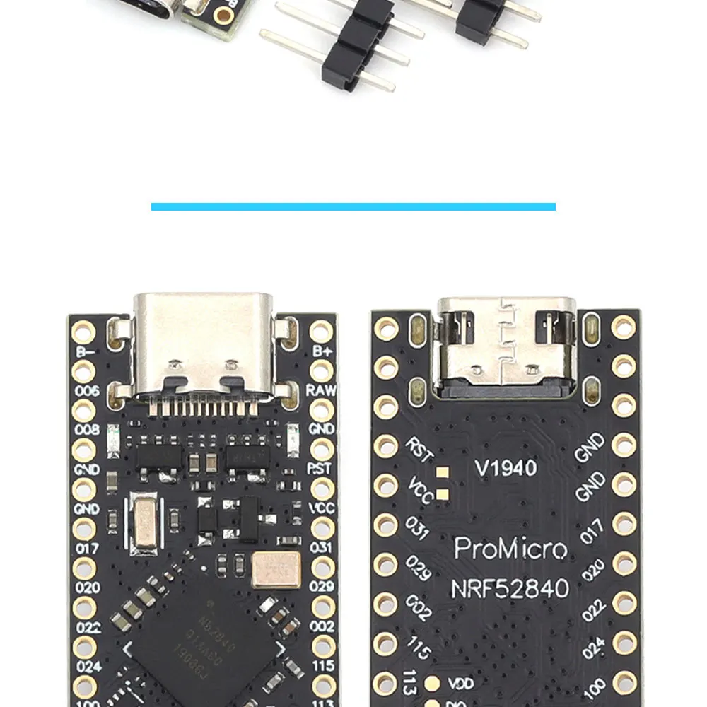 ¡SuperMini NRF52840 es una placa de desarrollo alternativa Pro Micro compatible con Nice!Nano.Sus pines son los mismos que ProMicro, lo que significa que se puede utilizar con casi cualquier teclado ProMicro.La placa de desarrollo NRF5280 tiene una interfaz de batería de litio de 3,7 V y un interruptor de software que puede cortar la alimentación del LED.Cuando está apagado, el consumo de energía en espera puede alcanzar 1 mA.