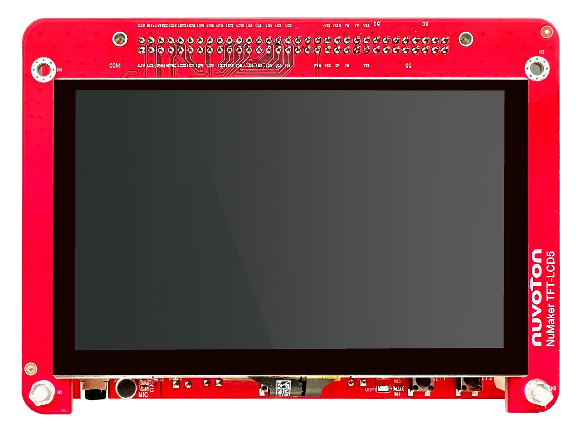 El NuMaker-HMI-N9H31 integra una pantalla táctil, entrada/salida de voz, ricos servicios de puerto serie e interfaces de E/S.El NuMaker-TFT-LCD5 se puede conectar a la placa principal a través de conectores de expansión DIN_32x2.El NuMaker-TFT-LCD5 incluye una pantalla LCD de 5 pulgadas con una resolución de 800 x 480 y un croma de 16,7 millones de colores (RGB de 24 bits) e incluye un panel táctil capacitivo.