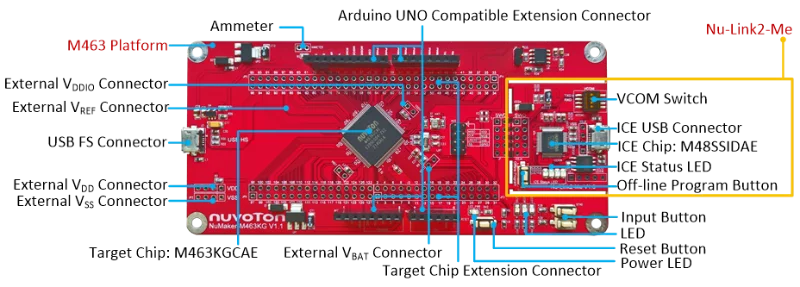 El NuMaker-M463KG es una placa de desarrollo para la serie de microcontroladores Nuvoton NuMicro M463.