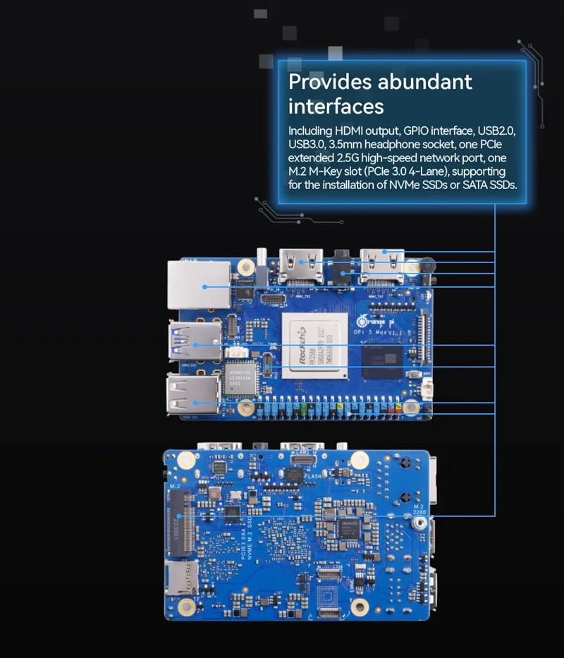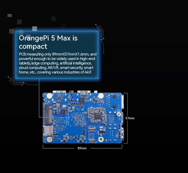 Orange Pi 5 Max 8GB 16GB RAM Rockchip RK3588 Placa de desarrollo M.2 PCIE 2.5G LAN WiFi6 + BT5 Caja opcional Fuente de alimentación EMMC