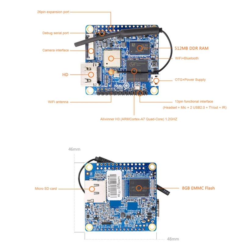 A pesar de su pequeño tamaño, el diseño es compacto y hermoso. Para Orange Pi Zero Plus2 tiene almacenamiento integrado, indicador LED, salida de vídeo HDMI, periféricos de bajo nivel y es compatible con el puerto GPIO de Raspberry Pi, con un puerto serie de depuración único, etc.