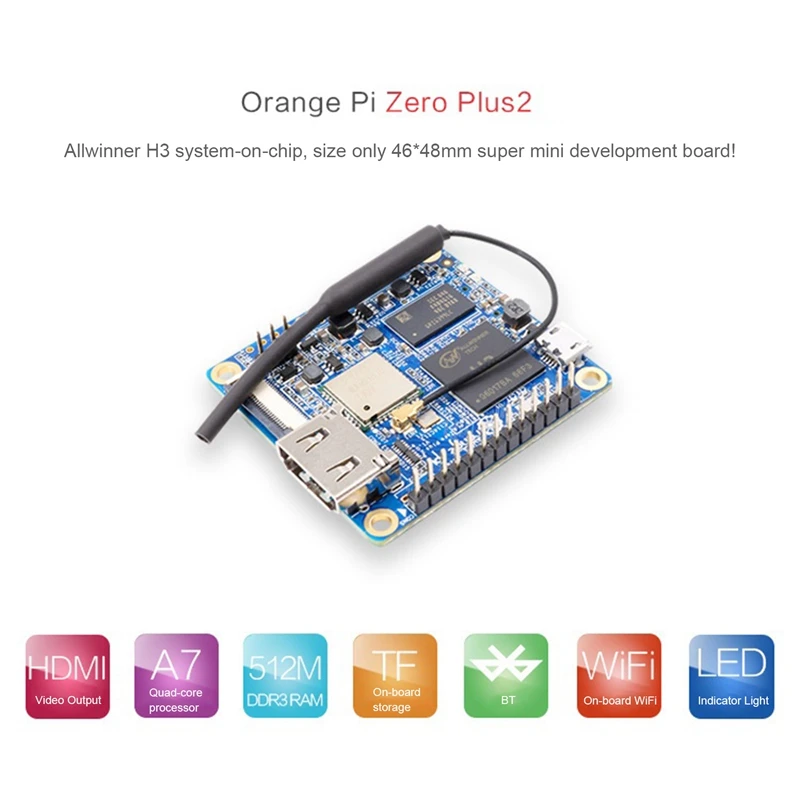 Para Orange Pi Zero Plus2 utiliza el procesador de alto rendimiento Allwinner quad-core A7 Allwinner H3 para integrar WiFi + Bluetooth, almacenamiento integrado, fuente de alimentación USB OTG, Puerto USB 2,0, etc.