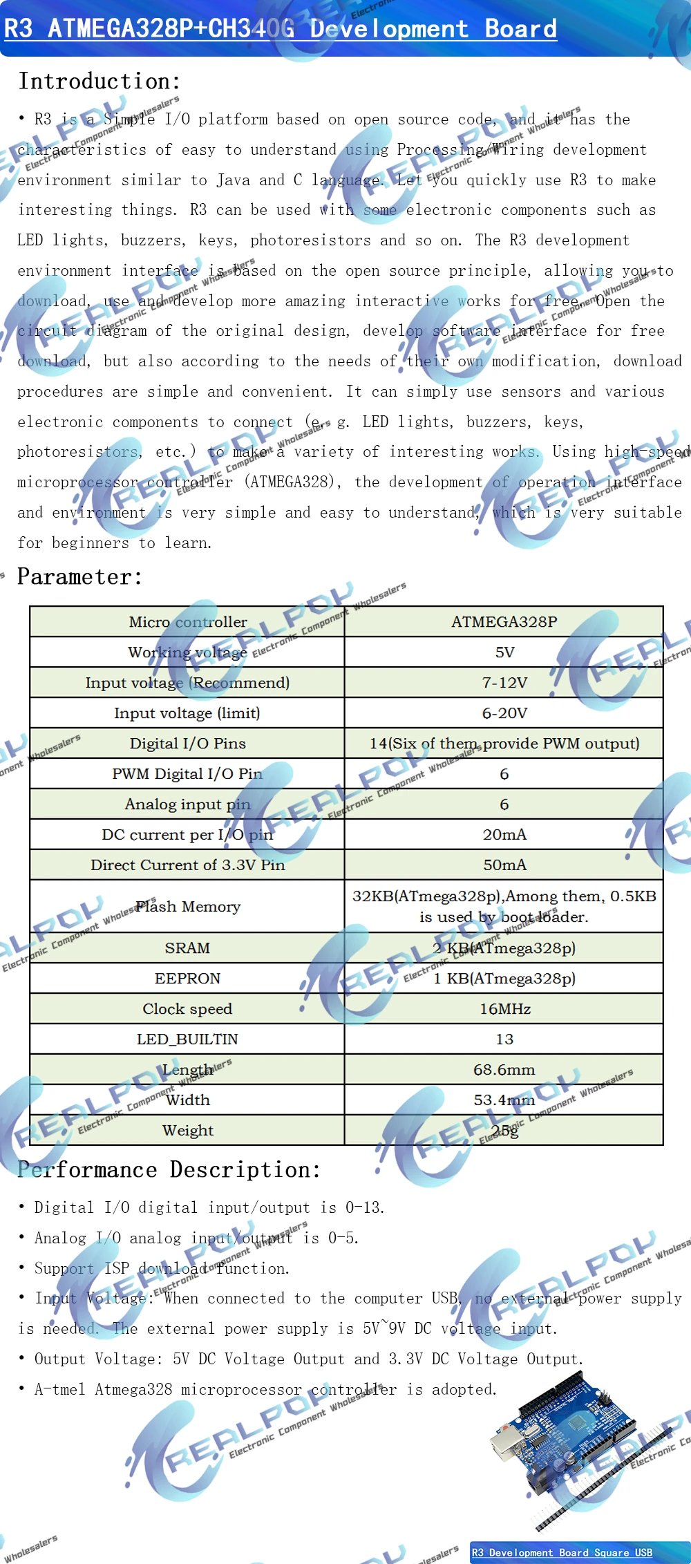 Placa de desarrollo R3 CH340G + MEGA328P SMD Chip 16Mhz R3 para placa de desarrollo R3 Cable USB ATEGA328P ATMEGA16U2