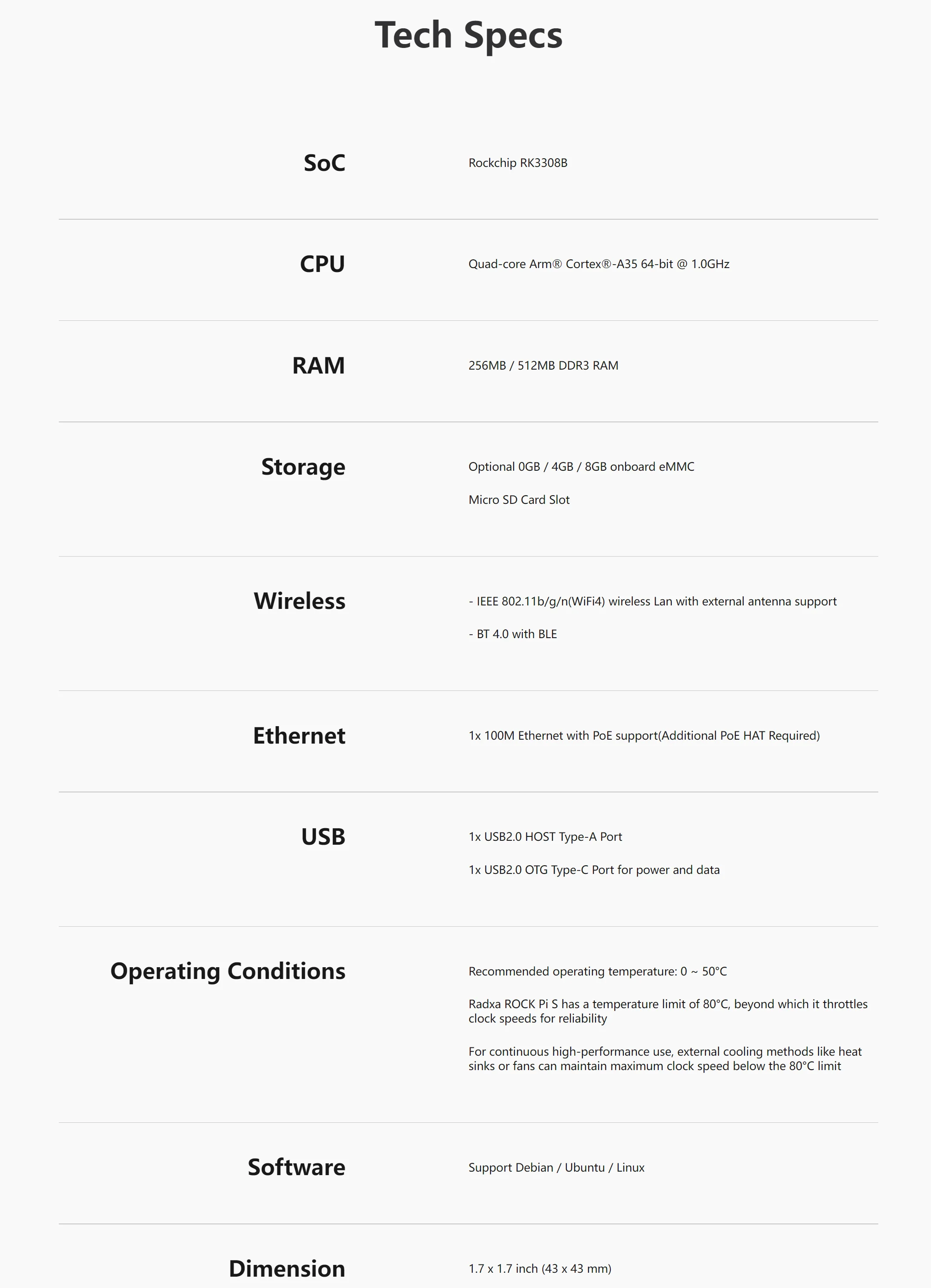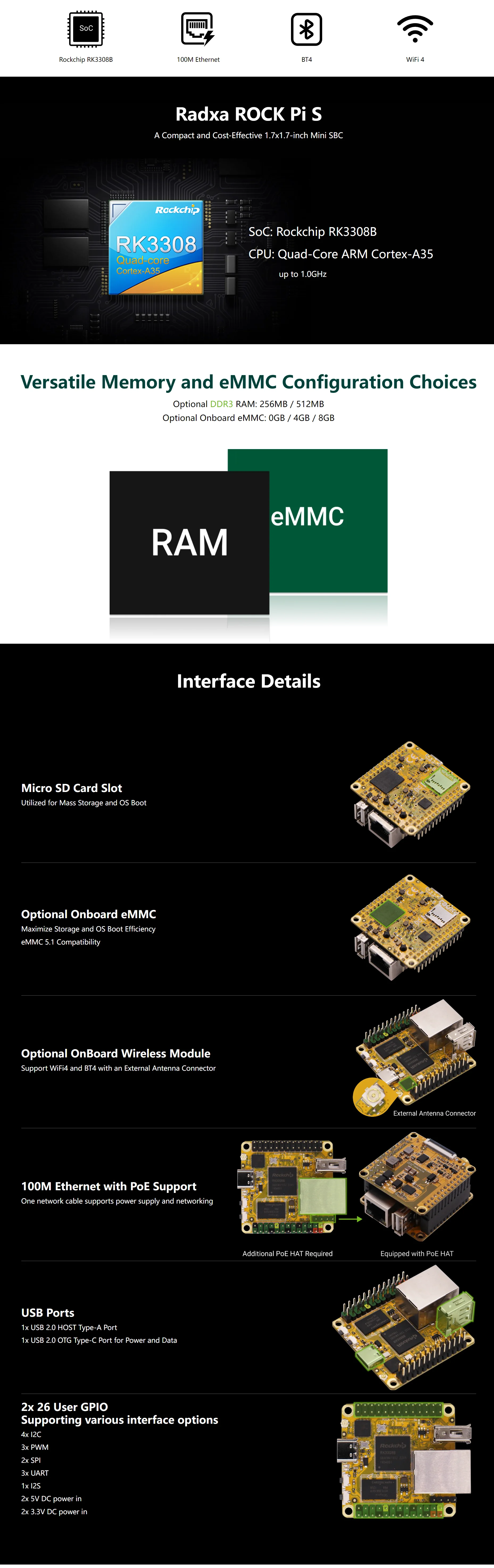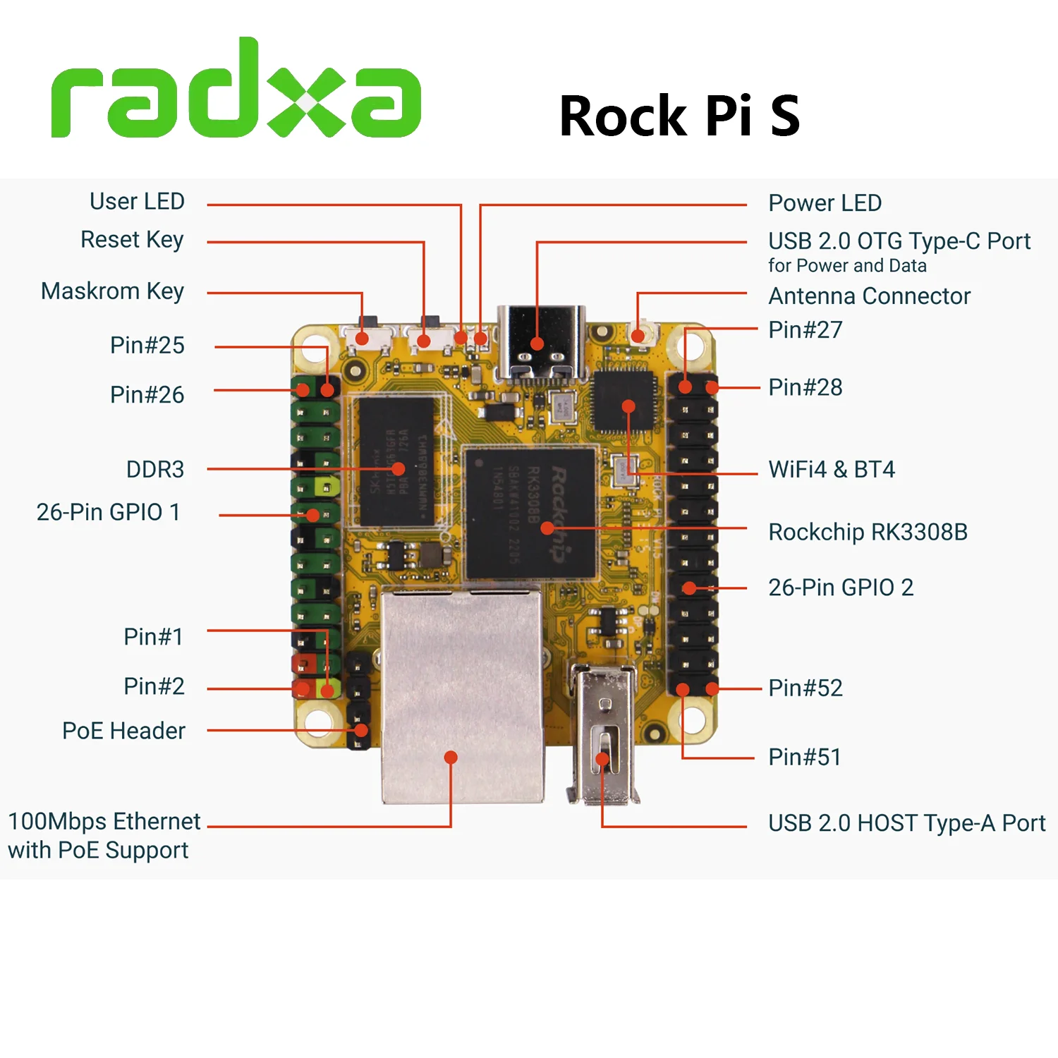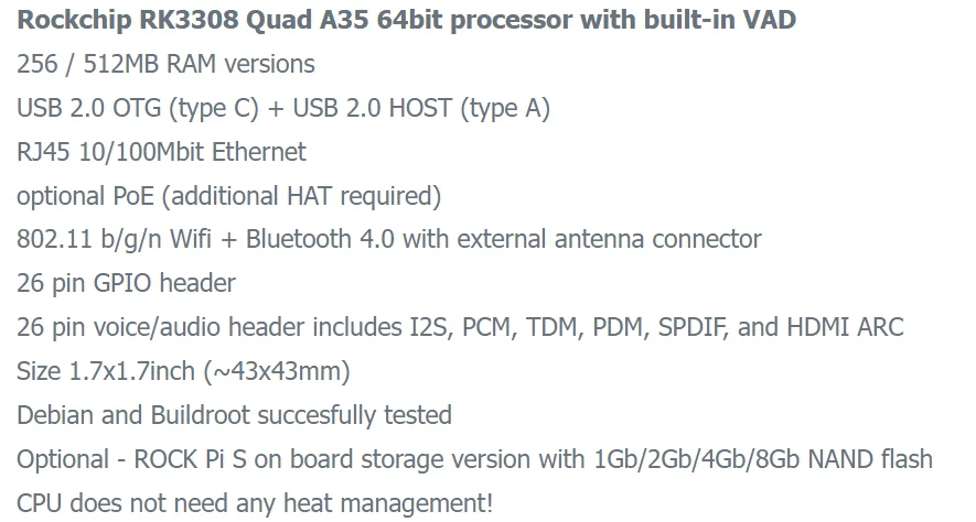 Comprar Placa de desarrollo Radxa ROCK Pi S V1.3, RK3308B, Quad-Core ARM Cortex-A35