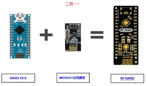 para el microprocesador Arduino RF-NANO es ATmega328 (Nano3.0) con interfaz USB-Micro, 14 puertos de entrada y salida digitales (6 de los cuales se pueden usar como salida PWM), 8 entradas analógicas, un oscilador de cristal de 16 MHz, un puerto USBMicro, un encabezado ICSP y un botón de reinicio.