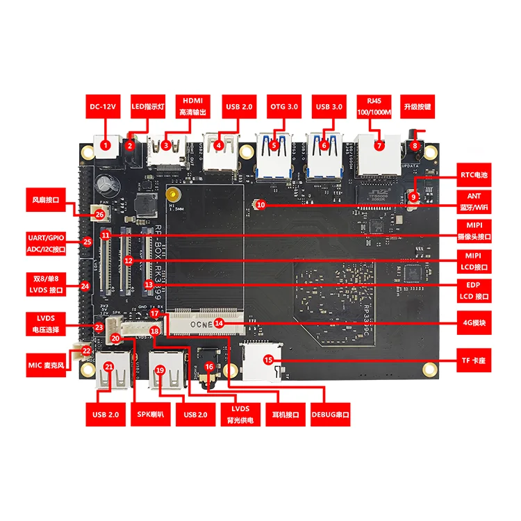 Placa base RP-BOX-RK3399K 2+16 (incluida la placa central)