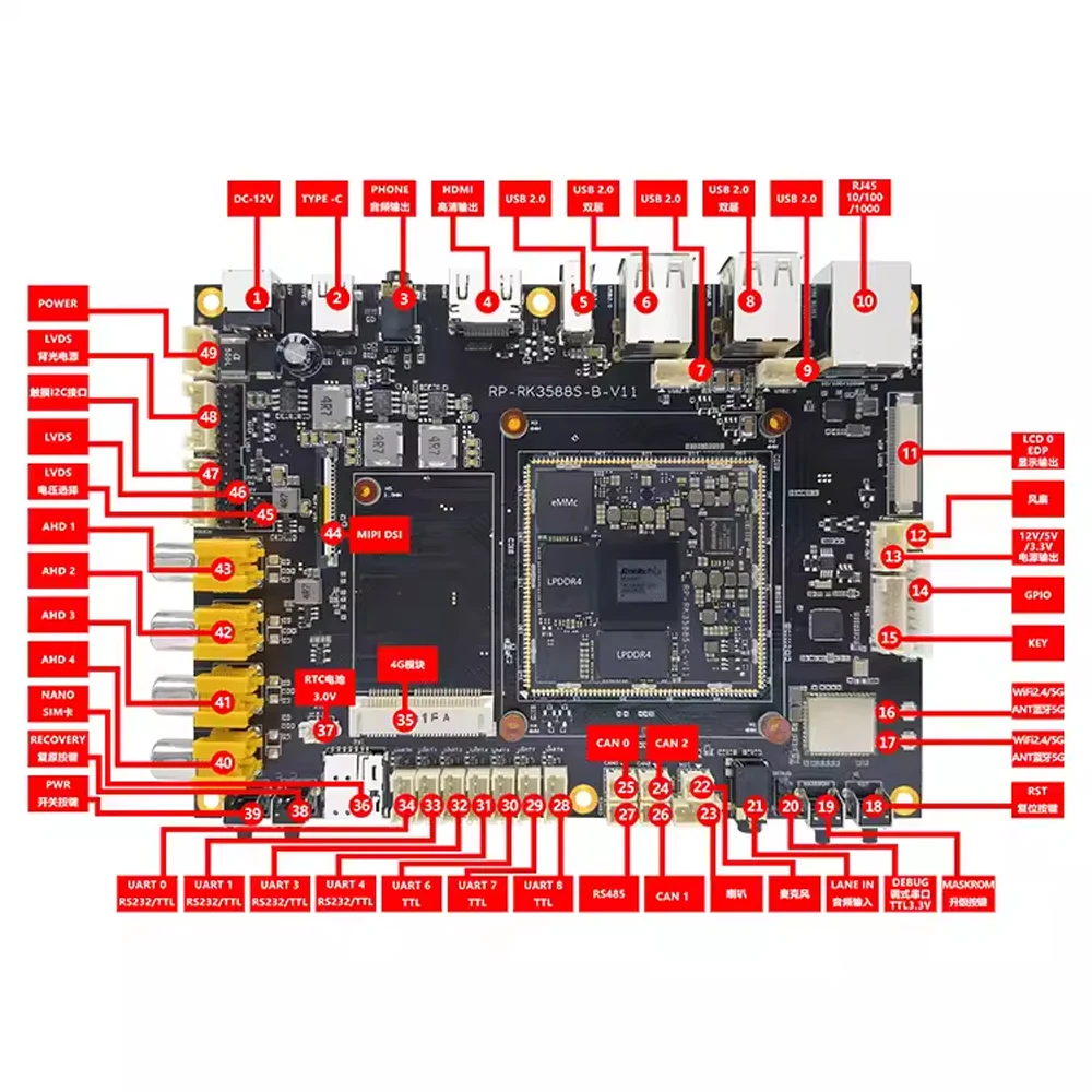 Comprar Placa de desarrollo Rockchip RK3588S RP-RK3588S placa central con orificio para sello Mali G610 MP4 compatible con Android12,ubuntu18.04