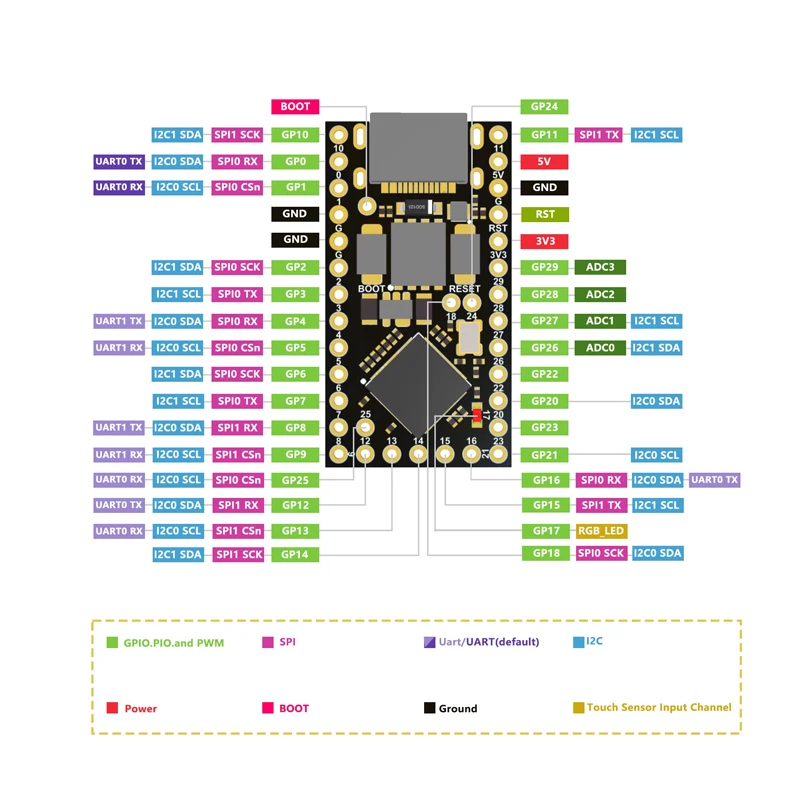 RP2040 ProMicro es una placa de control principal desarrollada en base a RP2040, con pines compatibles con ProMicro 32u4, con memoria flash de 4M, 16M, doble ARM Cortex-M0 a 133MHz y 264kB SRAM.