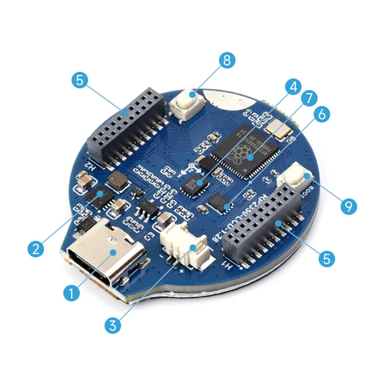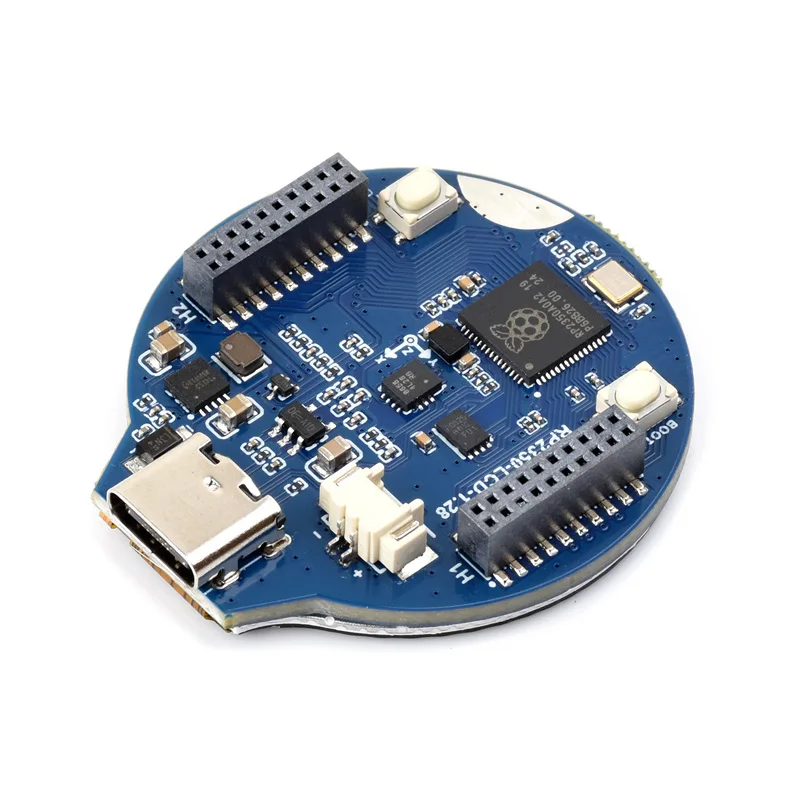 RP2350-LCD-1.28es una placa MCU de bajo costo y alto rendimiento diseñada por Waveshare.Tamaño pequeño con 1 integrado.Pantalla redonda LCD de 28 pulgadas, administrador de recarga de batería de iones de litio, sensor de 6 ejes (acelerómetro de 3 ejes y giroscopio de 3 ejes), etc., adaptando todos los pines GPIO y de depuración, lo que le facilita su desarrollo e integración en productos rápidamente.