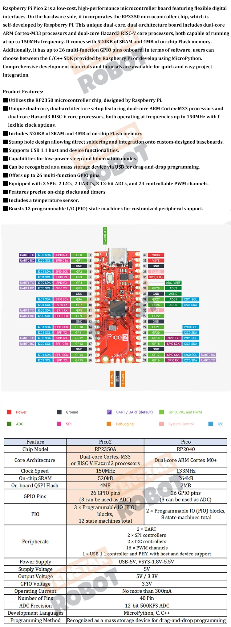 El puerto de depuración SWD de esta placa no funciona con la sonda de depuración Rapberry Pi ni con Picoprobe. Pero esta placa puede funcionar como Picoprobe.