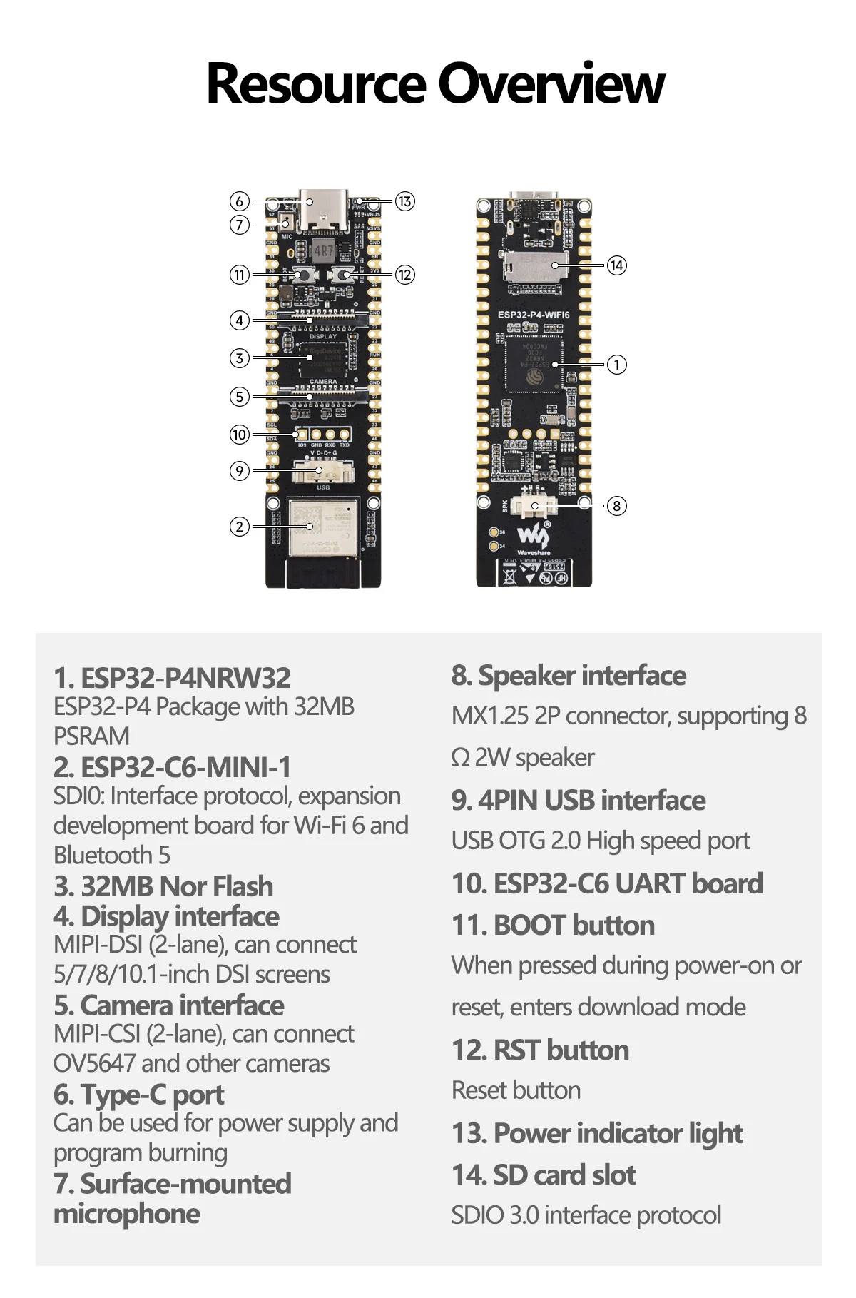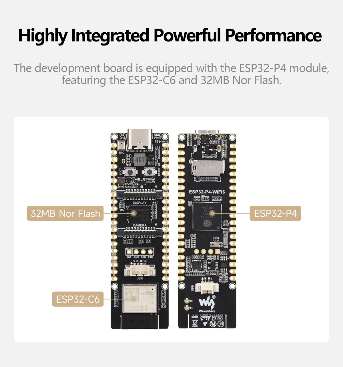 Placa de desarrollo Waveshare ESP32-P4 ESP32-P4-WIFI6 de alto rendimiento basada en ESP32-P4 y ESP32-C6 compatible con Wi-Fi6/Bluetooth5/BLE 5