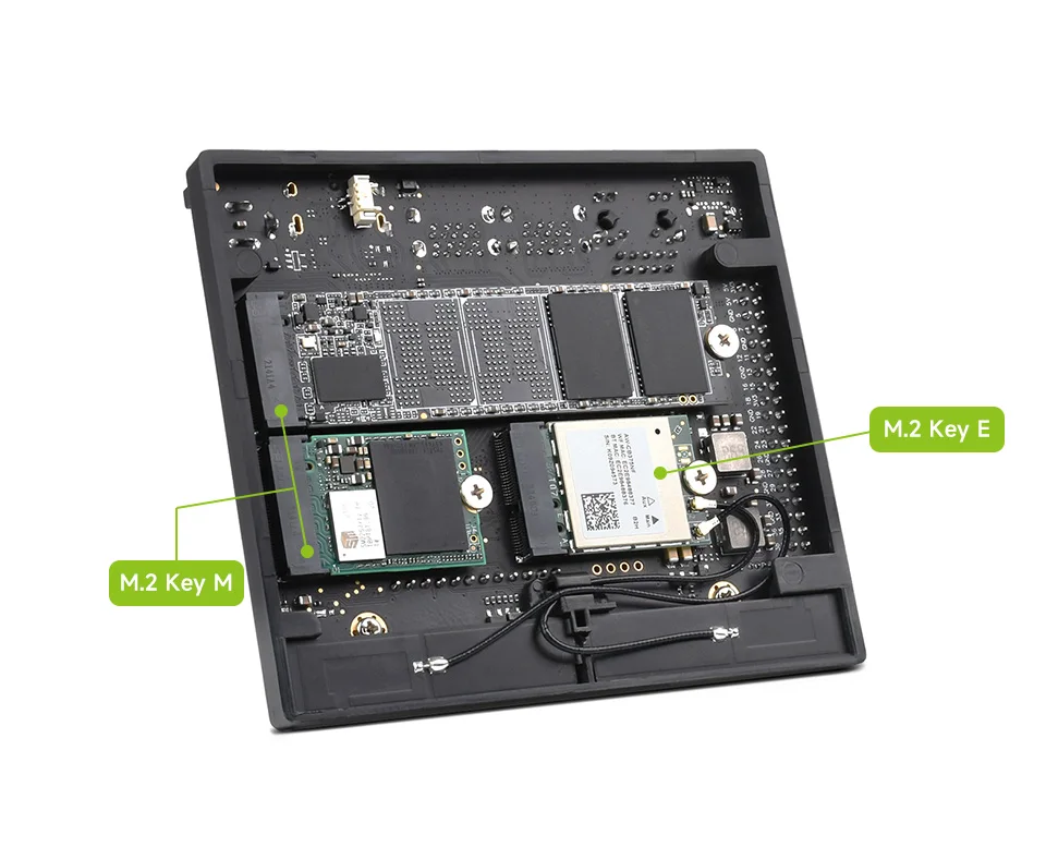 2 puertos M.2 Key M integrados para conectar fácilmente unidades de estado sólido y 1 interfaz M.2 Key E para conectar un NIC inalámbrico, que puede reducir la conexión del cable