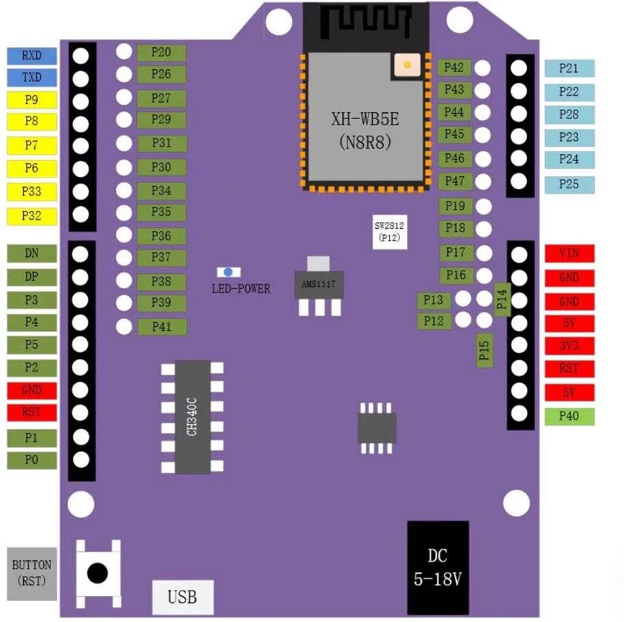 Características de la placa de desarrollo WB5E UNO:
