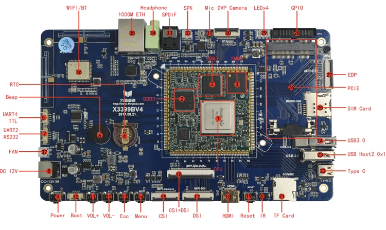 Comprar Placa de desarrollo X3399 Rockchip RK3399 placa base plataforma de alto rendimiento de 6 núcleos y 64 bits para AR VR Android 6,0 ubuntu 16,04