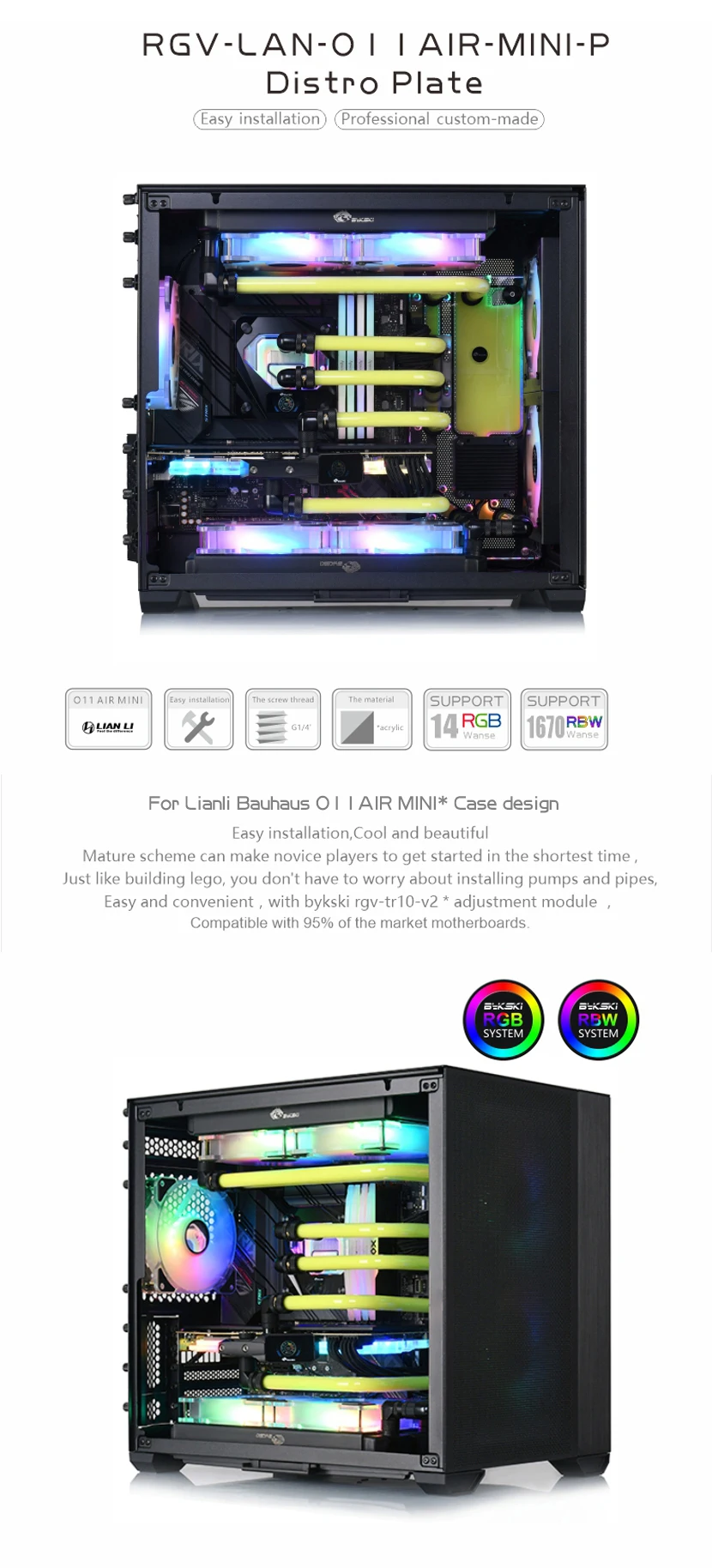 Comprar Placa de distribución Bykski para LIANLI O11 AIR MINI, bomba de depósito de placa de canal para refrigeración por agua de ordenador RGV-LAN-O11AIR-MINI-P
