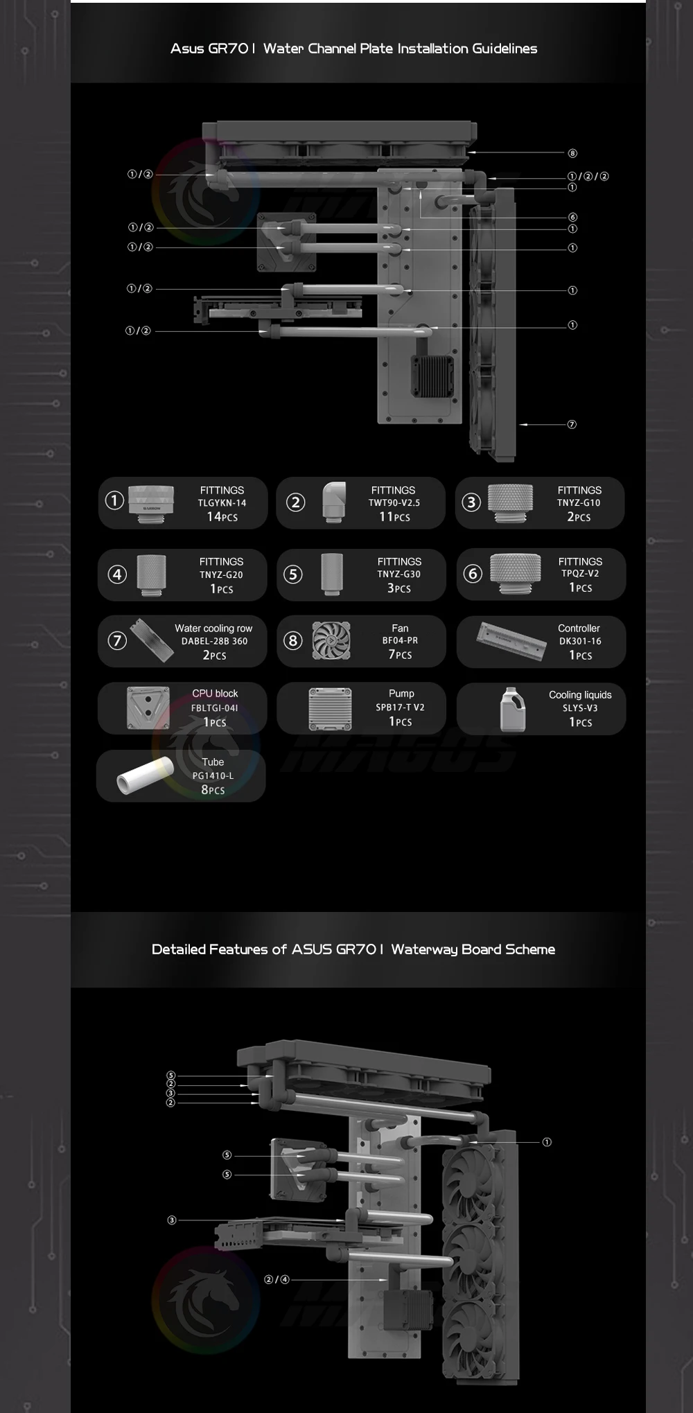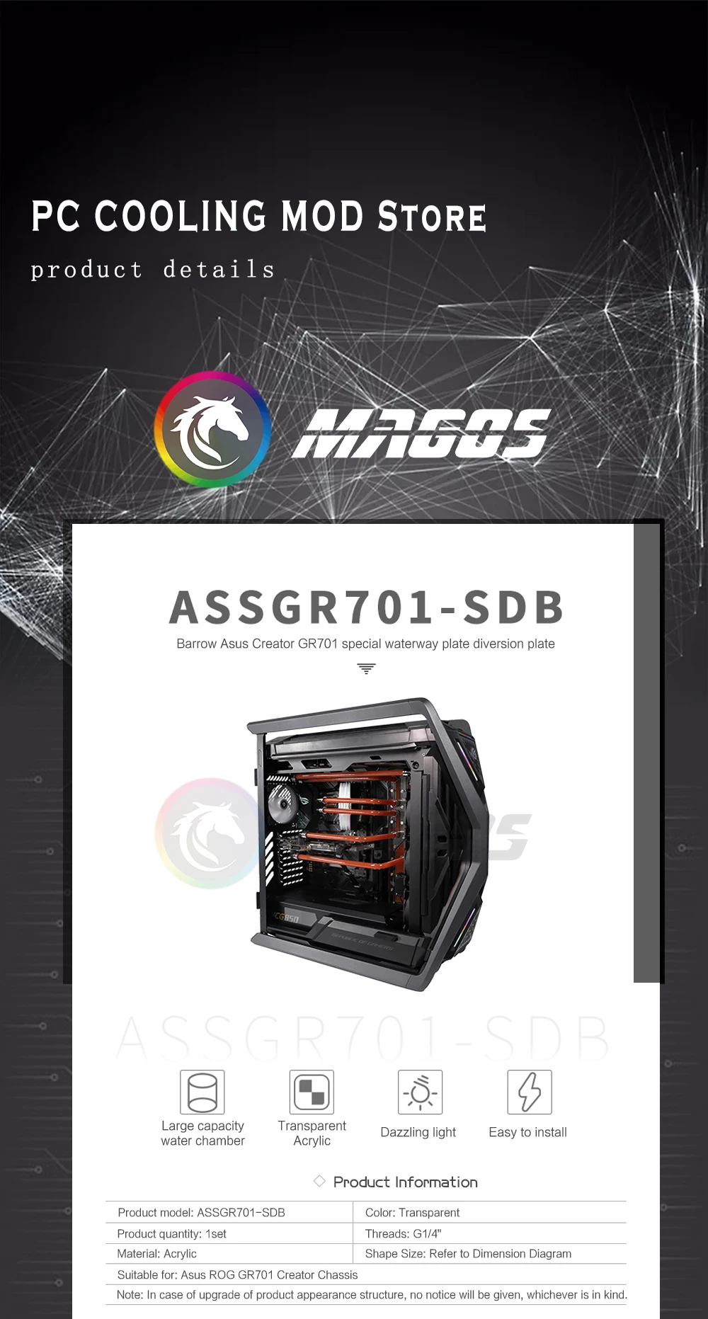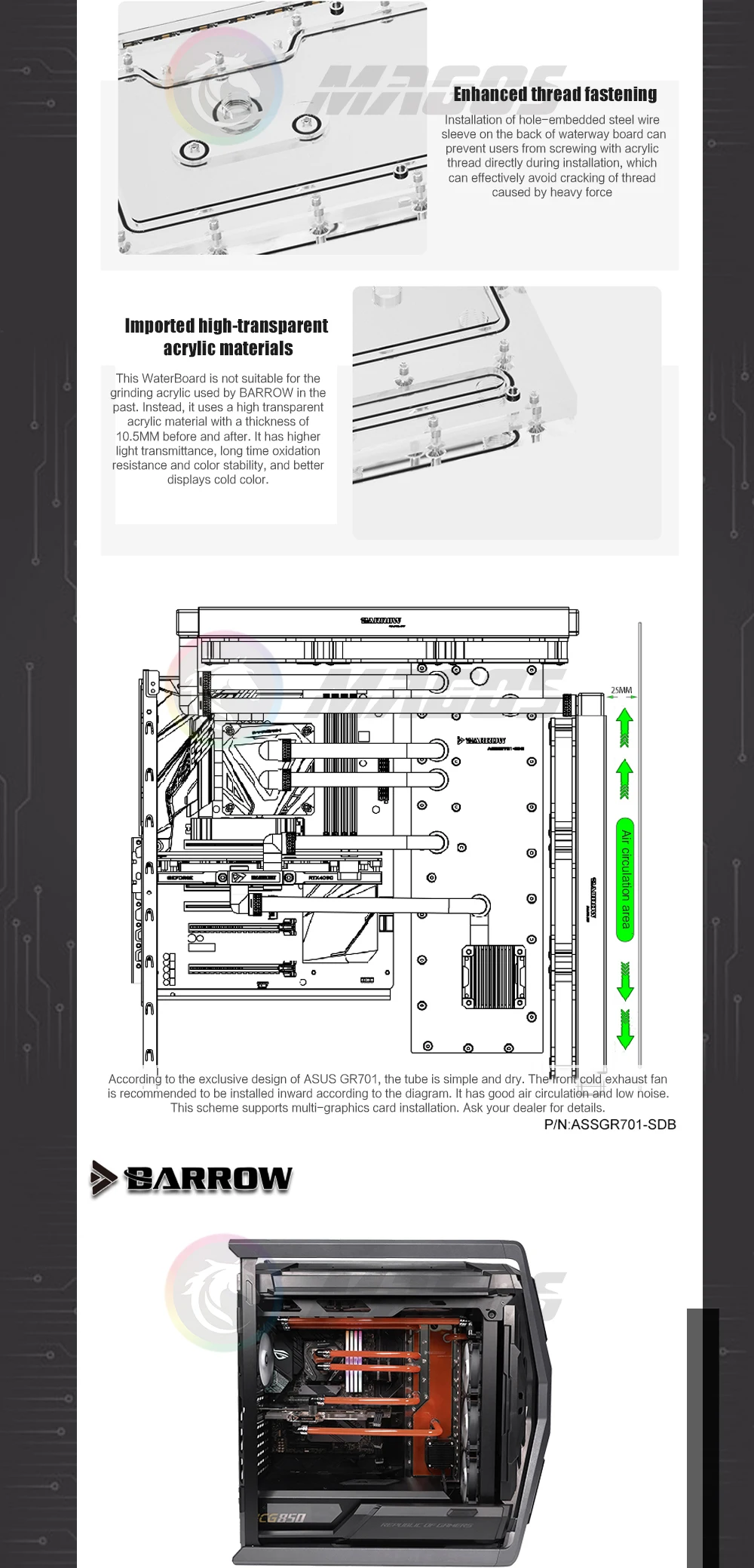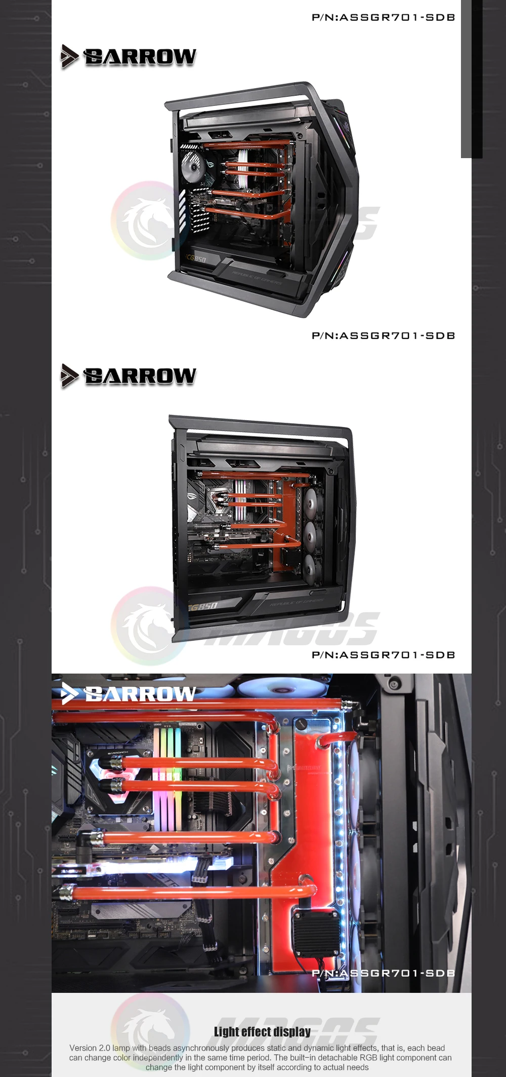 Comprar Placa de distribución de carretilla para ASUS ROG HYPERION GR701, placa de canal de agua, radiador Dual 360/420, Soluiton 5V ARGB ASSGR701-SDB