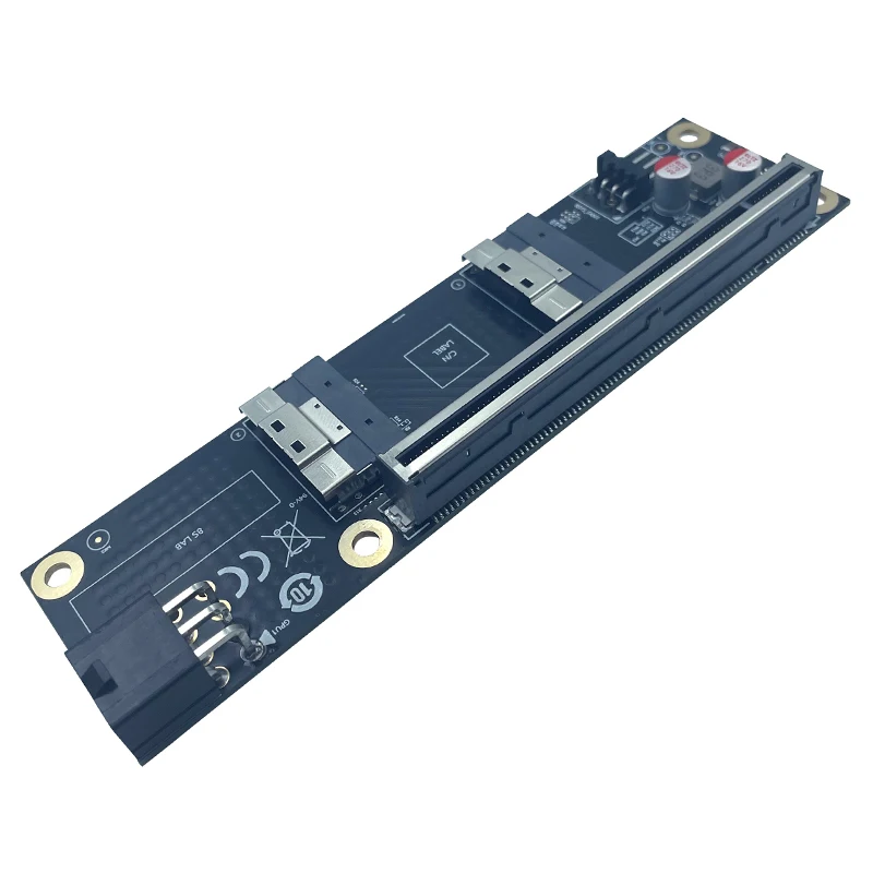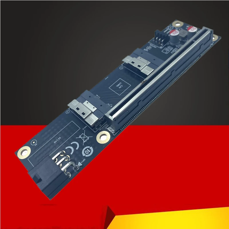 Placa elevadora extensora SFF-8654 a PCI Express X16 Convertidor delgado SAS a PCIE 5,0 16X con fuente de alimentación de 6 pines para tarjeta gráfica GPU