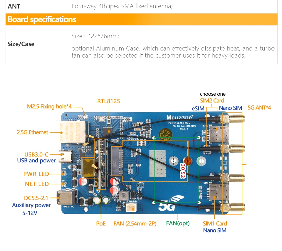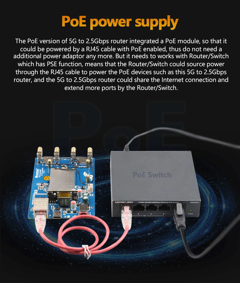 Comprar Placa Ethernet(PoE) MR5210P de 5G a 2,5 Gbps, llave de M.2-B a usb3.0, RTL8125 para PCIE, compatible con RM520N,RM521F,RM500Q, alimentación PoE