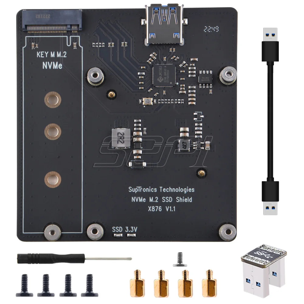 La placa de expansión X876 M.2 NVMe SSD ofrece una forma fácil y rápida de crear una gran solución de almacenamiento para su Raspberry Pi 4B. Su diseño elegante y ultracompacto permite que el SSD M.2 se una cómodamente a la Raspberry Pi. El Puerto USB 3,0 SuperSpeed ofrece una velocidad de transferencia de datos de hasta 5Gbps, lo que le permite transferir una gran cantidad de datos en segundos. Los orificios de montaje y los separadores ayudan a proteger las unidades de estado sólido, al tiempo que alejan eficazmente el calor de la unidad para un rendimiento fiable. La luz LED incorporada indica el estado de lectura o escritura, no más conjeturas de nuevo.