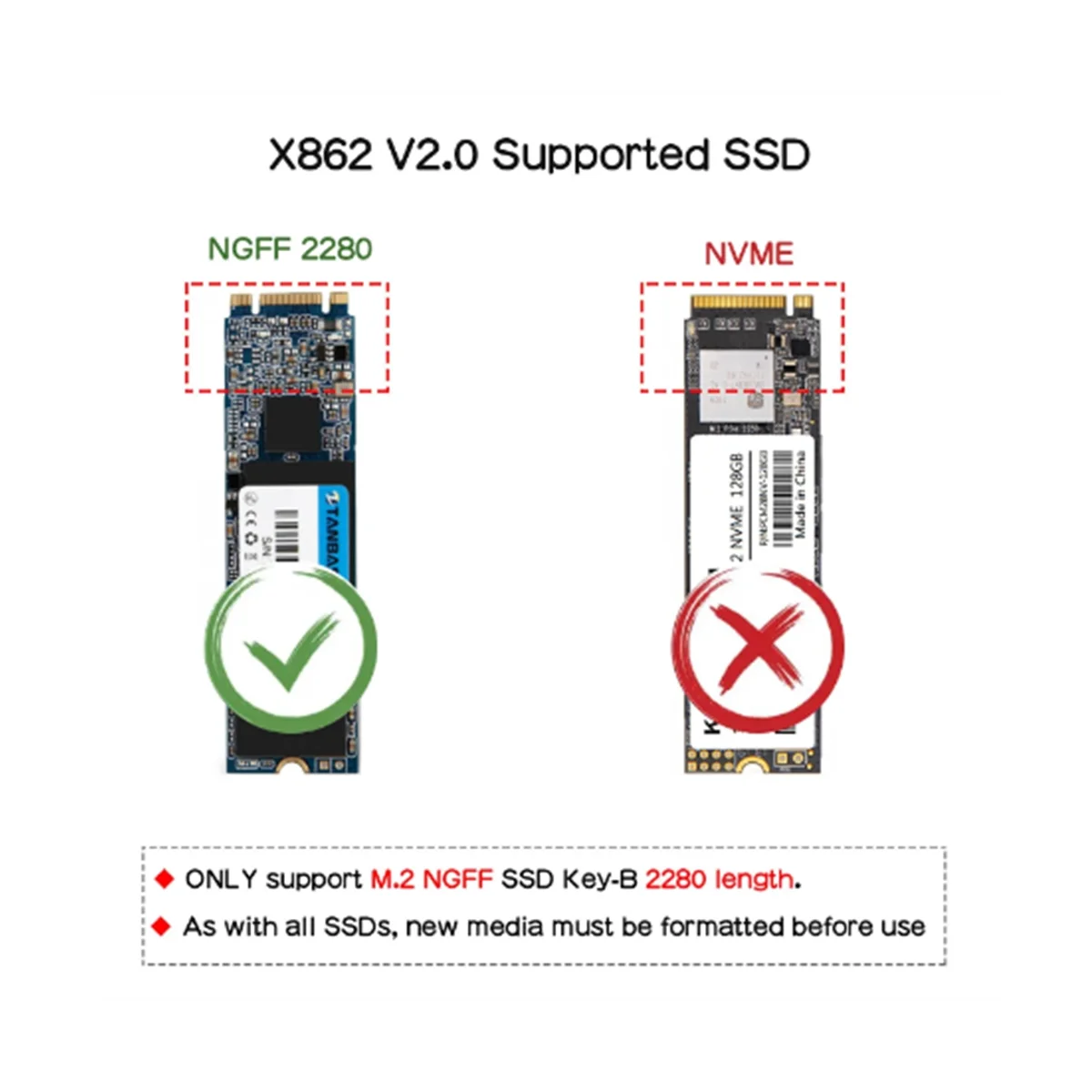 Solución de almacenamiento perfecta para 4 - M.2 NGFF SATA SSD, admite hasta 2TB M.2 NGFF SSD unidad de estado sólido, solo admite M.2 NGFF SSD 2280 de longitud.