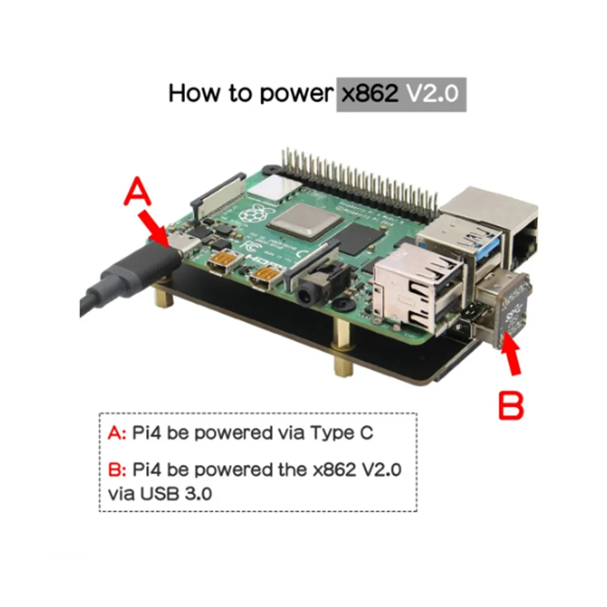 Totalmente compatible con X715 para un amplio voltaje de entrada (6 ~ 60V) y gestión de energía inteligente, totalmente compatible con X765 para alimentar a través de Ethernet (POE, 5V 5A),. Totalmente compatible con X728/X708 para fuente de alimentación ininterrumpida (18650 UPS, 5,1 V 8A)