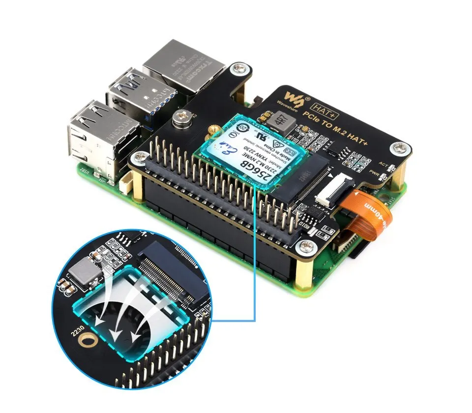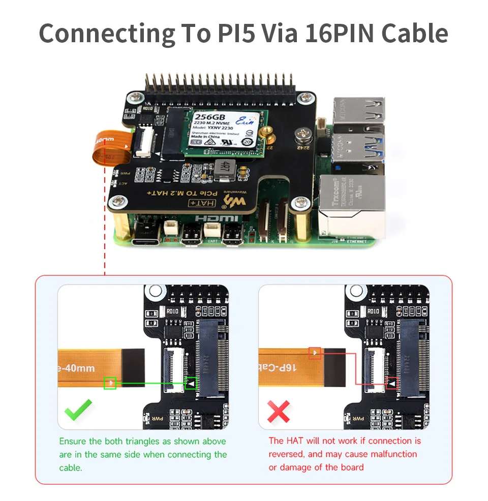 Conexión al PI5 mediante cable de 16 pinesBasado en la interfaz PCIe de 16 pines de Raspberry Pi 5