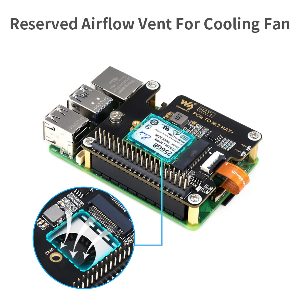 Ventilación de flujo de aire reservada para ventilador de refrigeraciónMejor efecto de enfriamiento para Pi5 y unidades de estado sólido