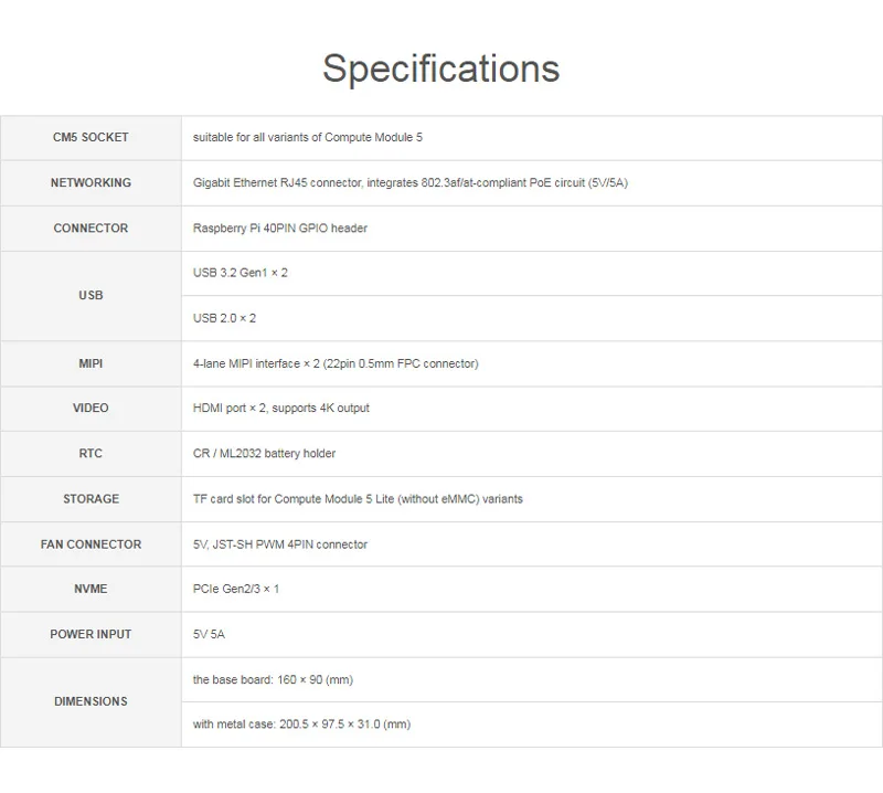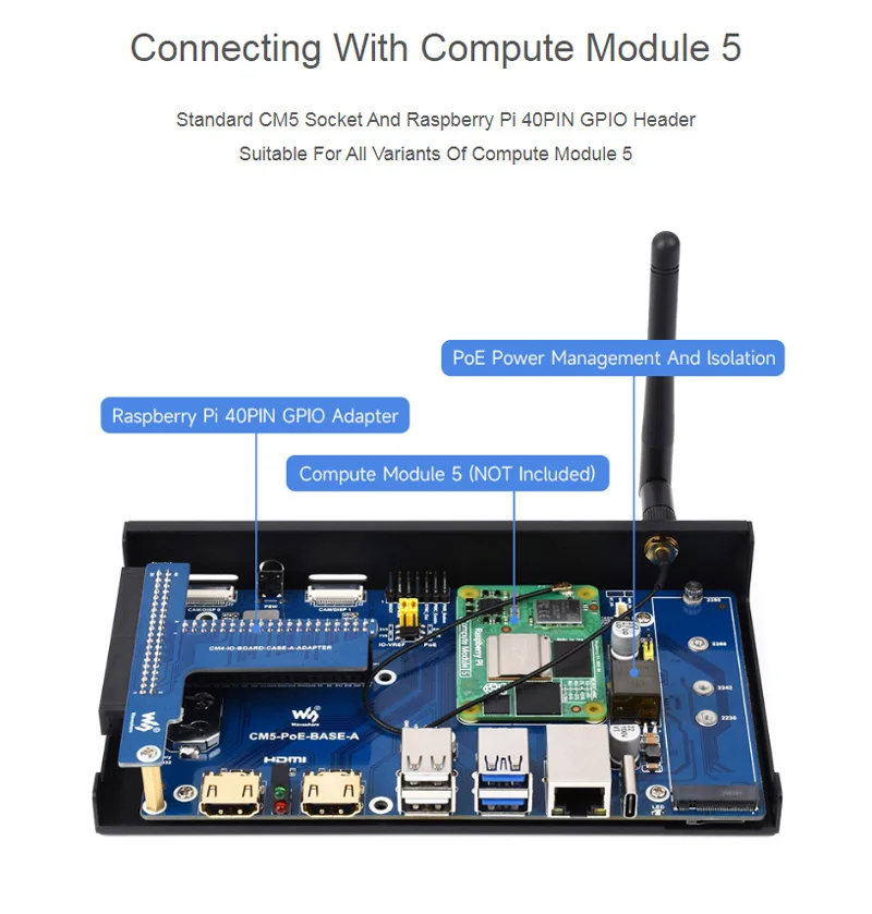 Placa de expansión CM5 IO con función PoE para todos los módulos de cómputo 5 variantes para Raspberry Pi opcional con estuche