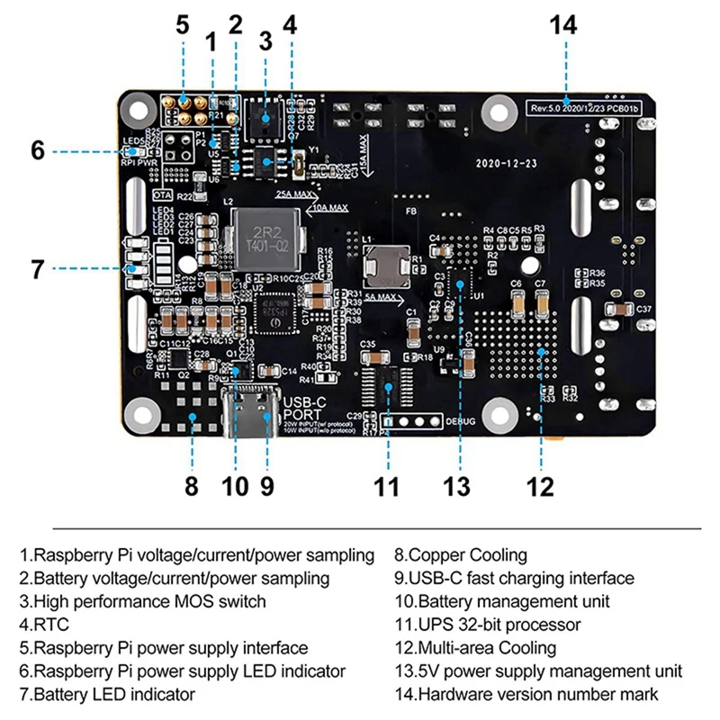 DISEÑO INTELIGENTE: UPS para Raspberry PI 4B / 3B + / 3B. Gestión de ruta de energía incorporada, carga lateral de soporte, función de compensación de línea de alta corriente de carga. Hay dos salidas de alimentación de Puerto USB A y también añade una salida tipo C. Proporciona energía ininterrumpida para que Raspberry Pi siga funcionando mientras se mueve, y su diseño es tan inteligente que puede deshacerse de los problemas de un cable de masa.