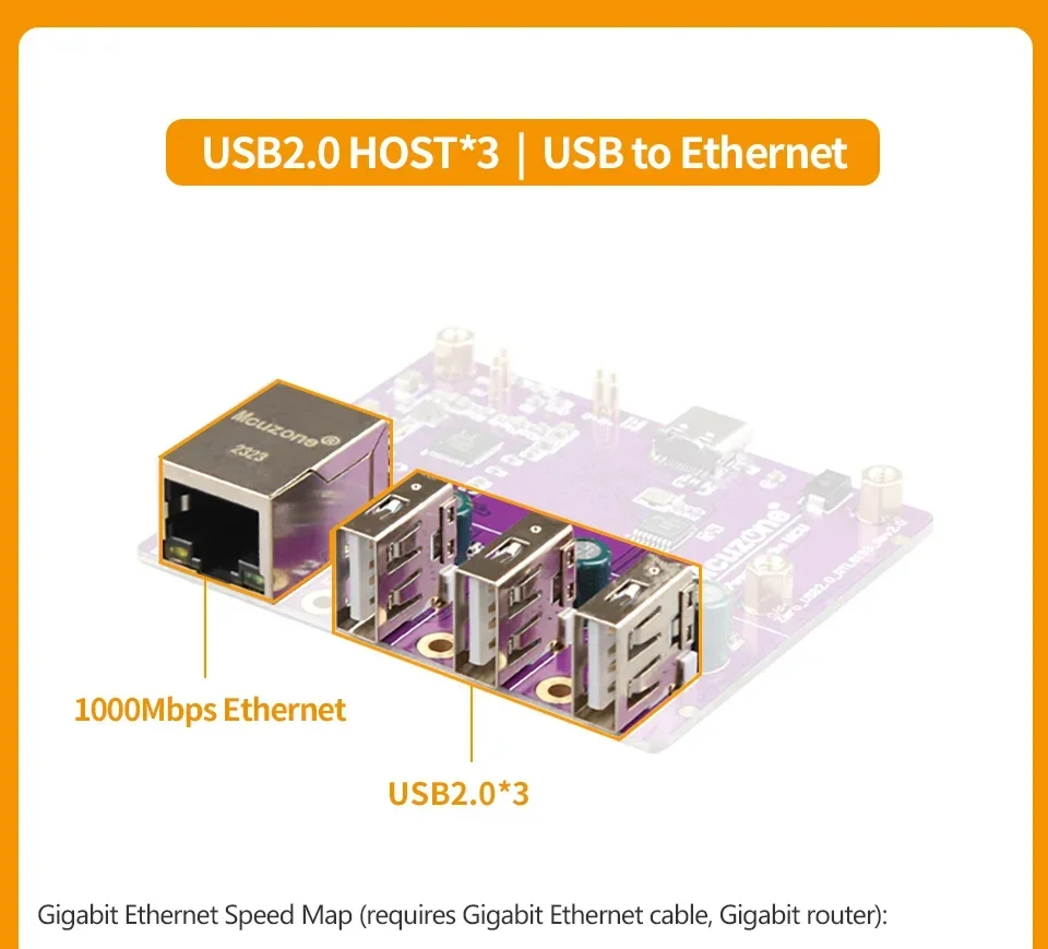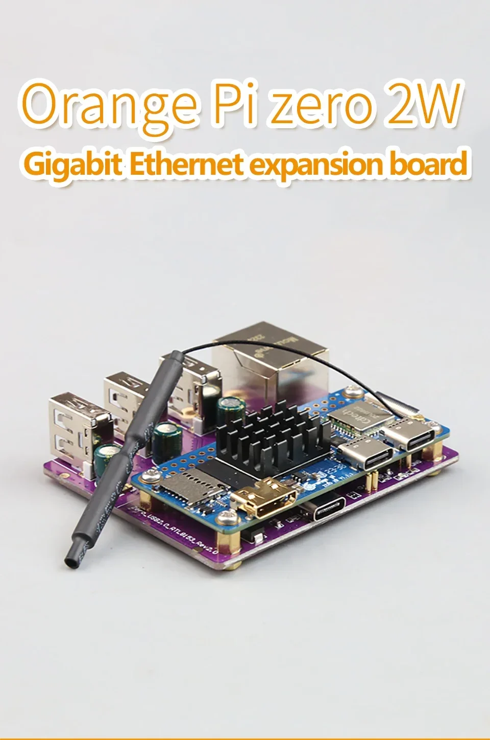 Placa de expansión Orange Pi Zero 2W Gigabit Ethernet UNO R3 Compatible con puerto MicroSD WiFi Bluetooth incorporado