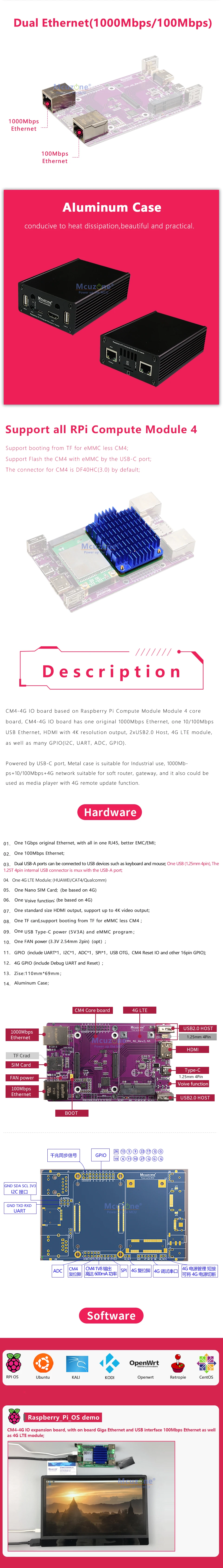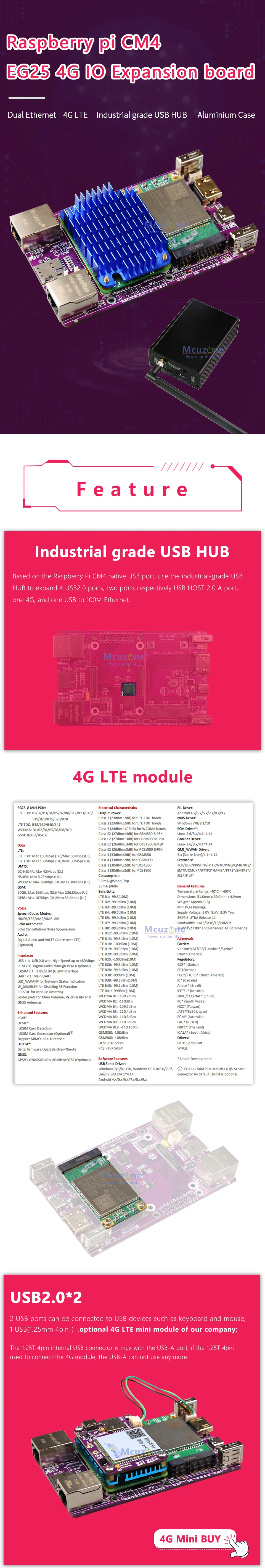 Comprar Placa de expansión Raspberry pi CM4_4G IO (EG25-G) Ethernet dual /4G LTE/HUB USB de grado industrial/caja de aluminio Ubuntu