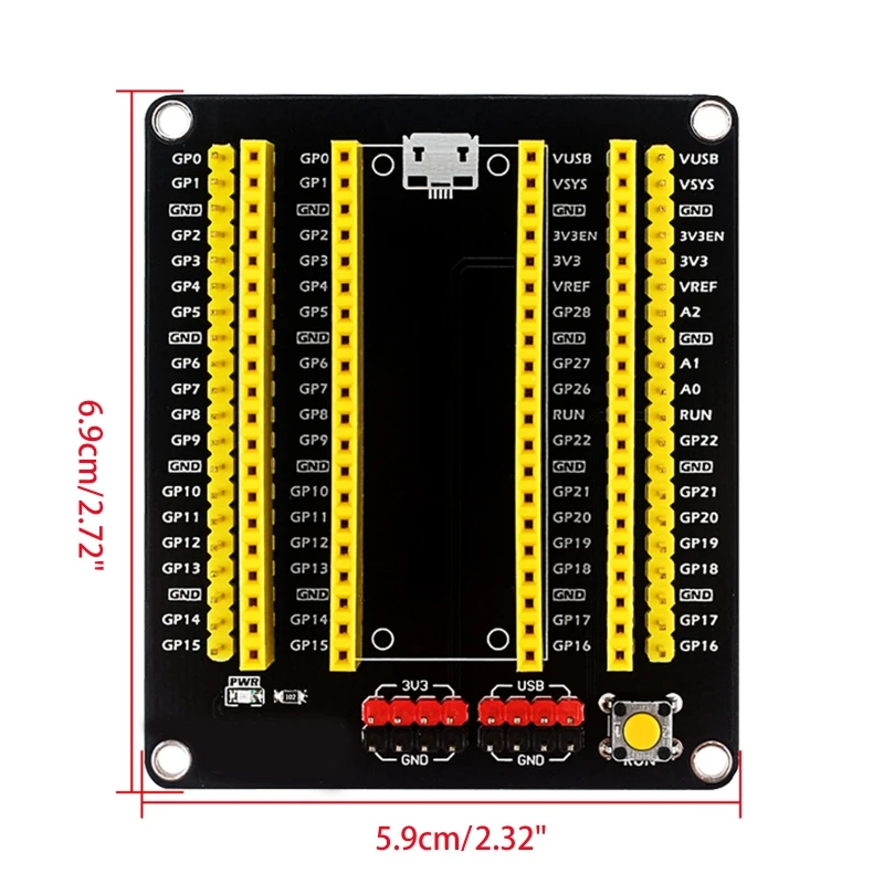 Conveniente: resuelve el problema de que la pantalla de seda Raspberry Pi Pico esté cubierta y proporciona una combinación de pines de encabezado y encabezado, lo que es conveniente para que los usuarios construyan sus propios circuitos de bricolaje.