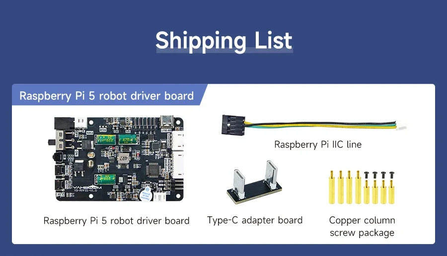 Lista de envío de la placa de expansión del robot Raspberry Pi 5: