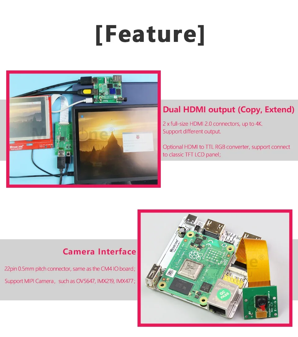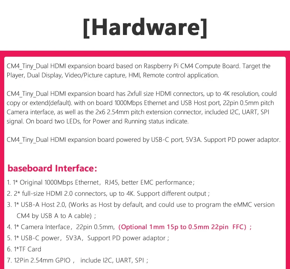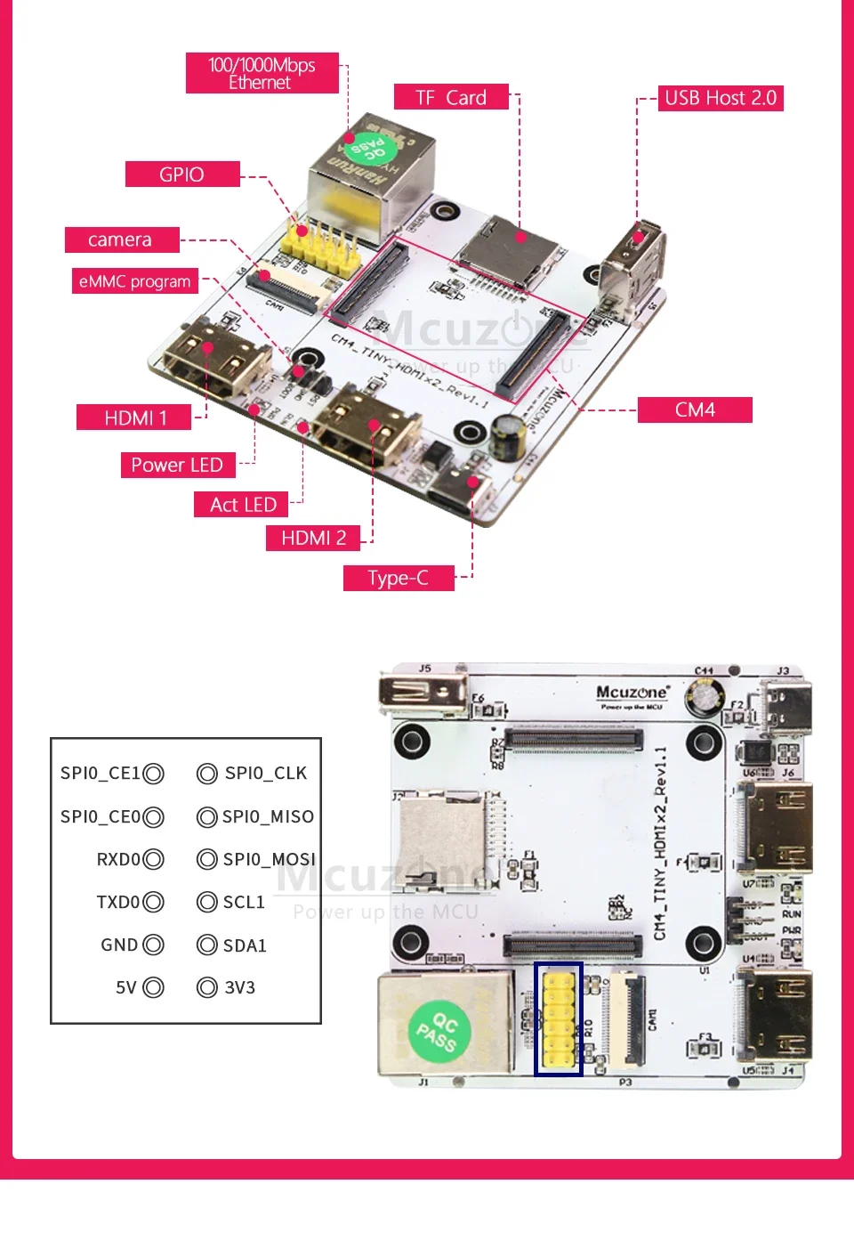 Placa de expansión RPi CM4_Tiny, HDMI Dual, Gigiga Ethernet, cámara, USB, módulo de cómputo Raspberry Pi 4, TV KODI Player KALI Ubuntu