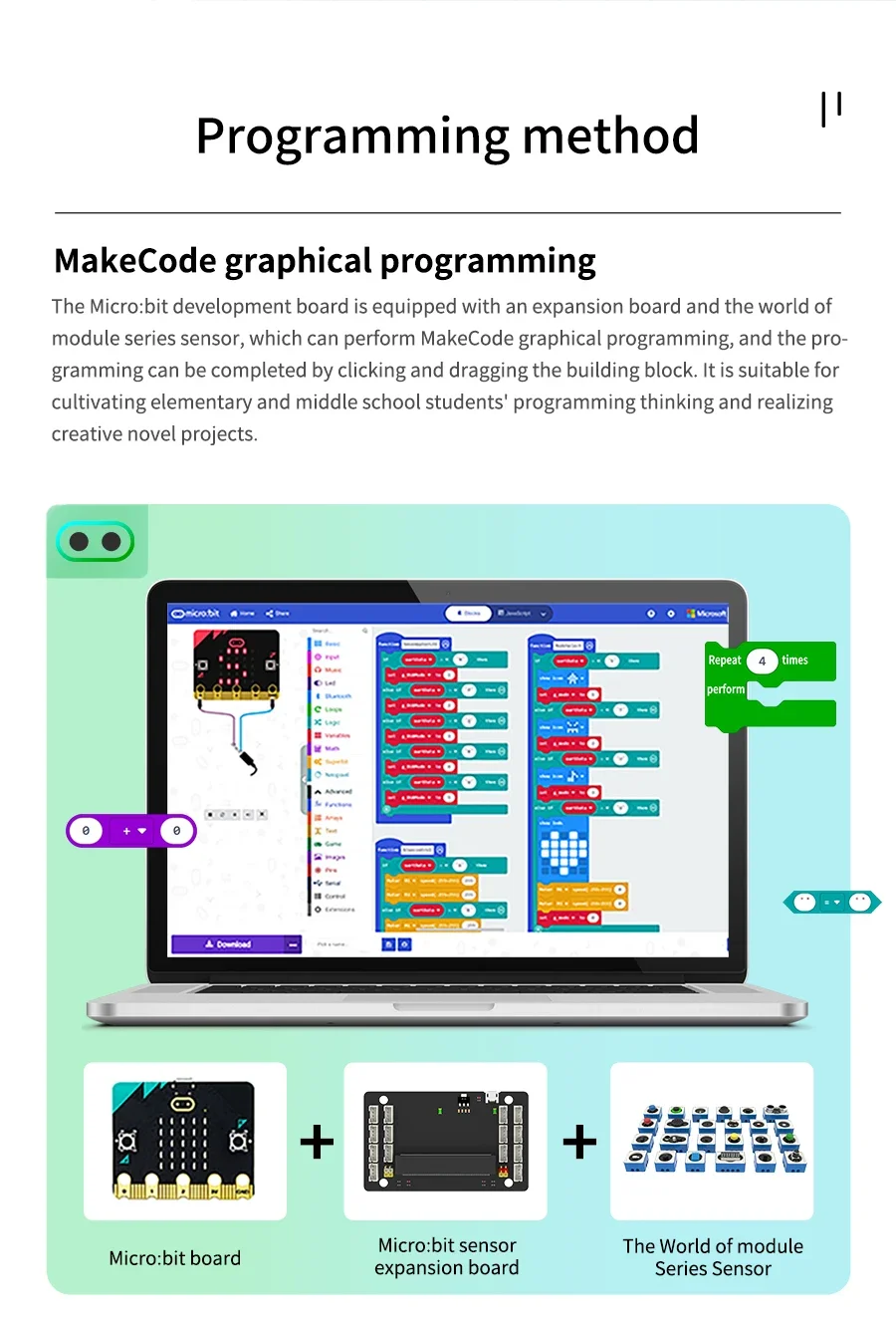 4.Se puede utilizar para crear algunos interesantes kits de sensores de bloques de construcción Micro:bit.
