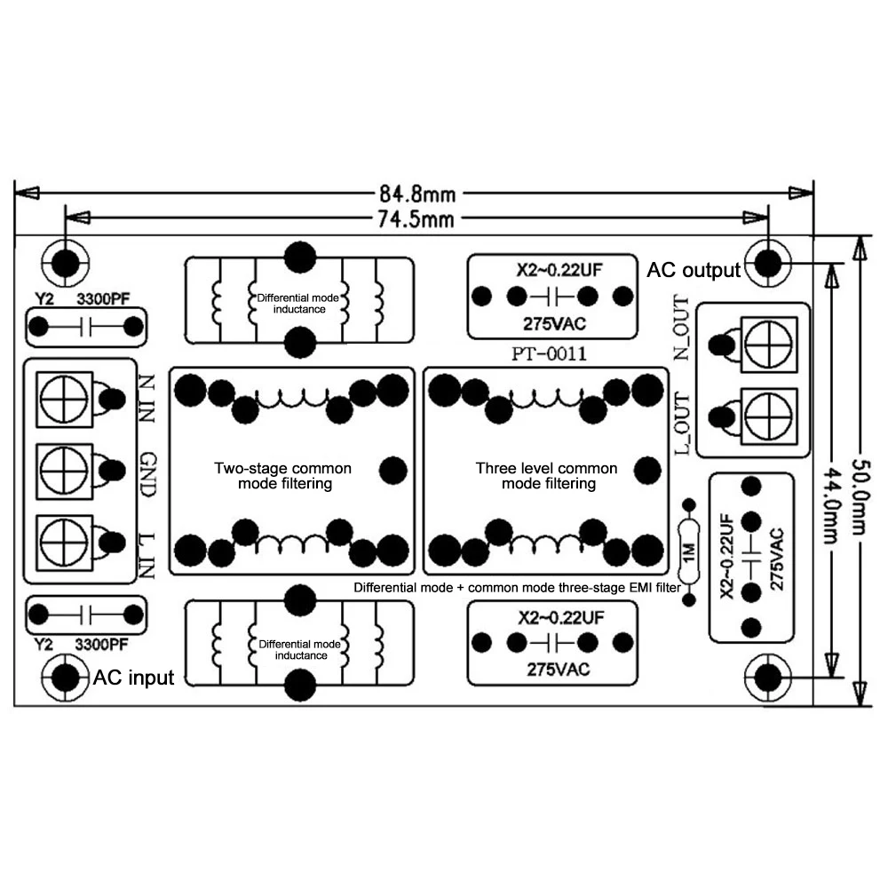Nombre: amplificador de potencia de audio de tres niveles filtro de línea EMI