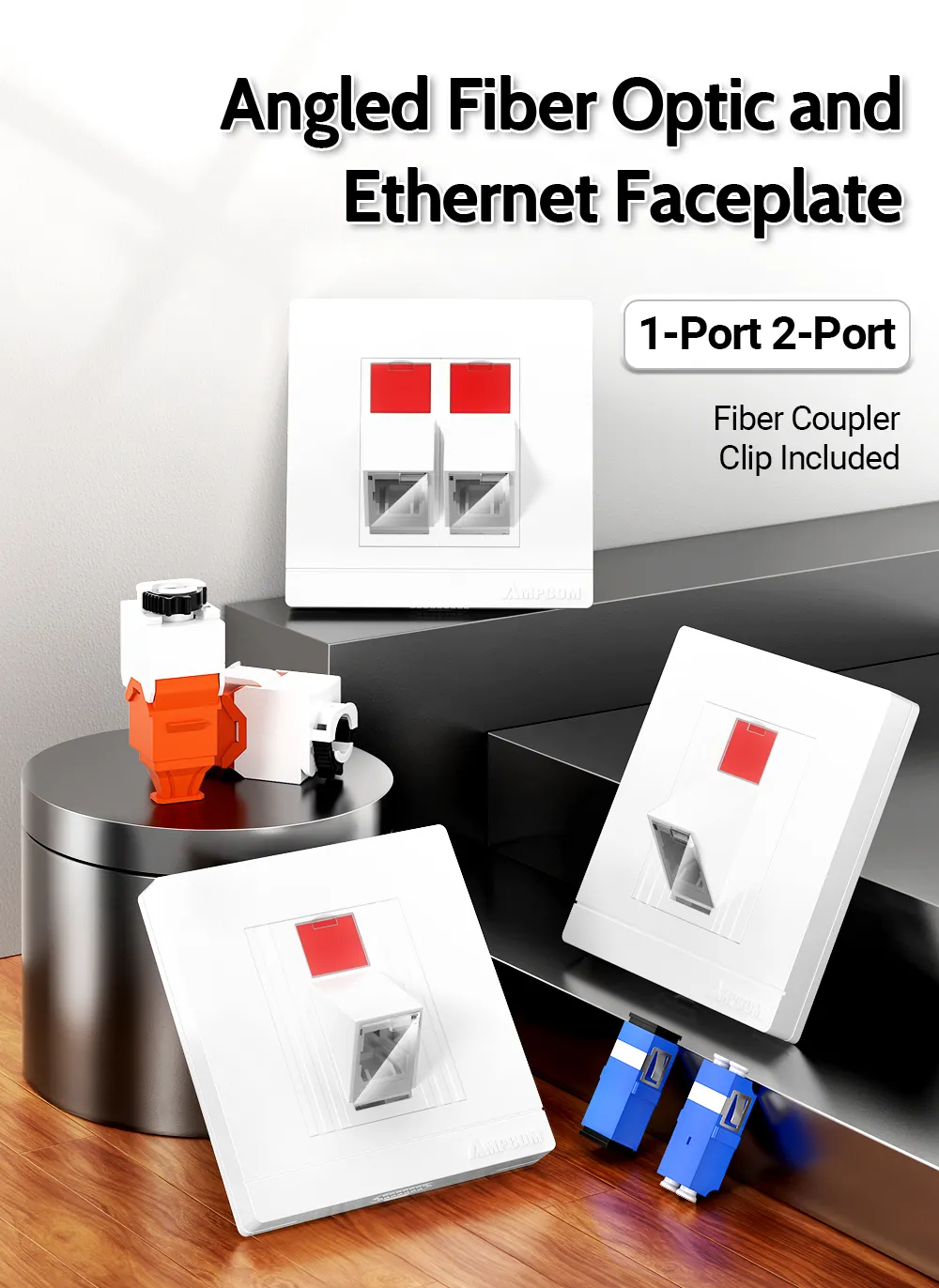 Placa frontal de fibra óptica y Ethernet en ángulo AMPCOM