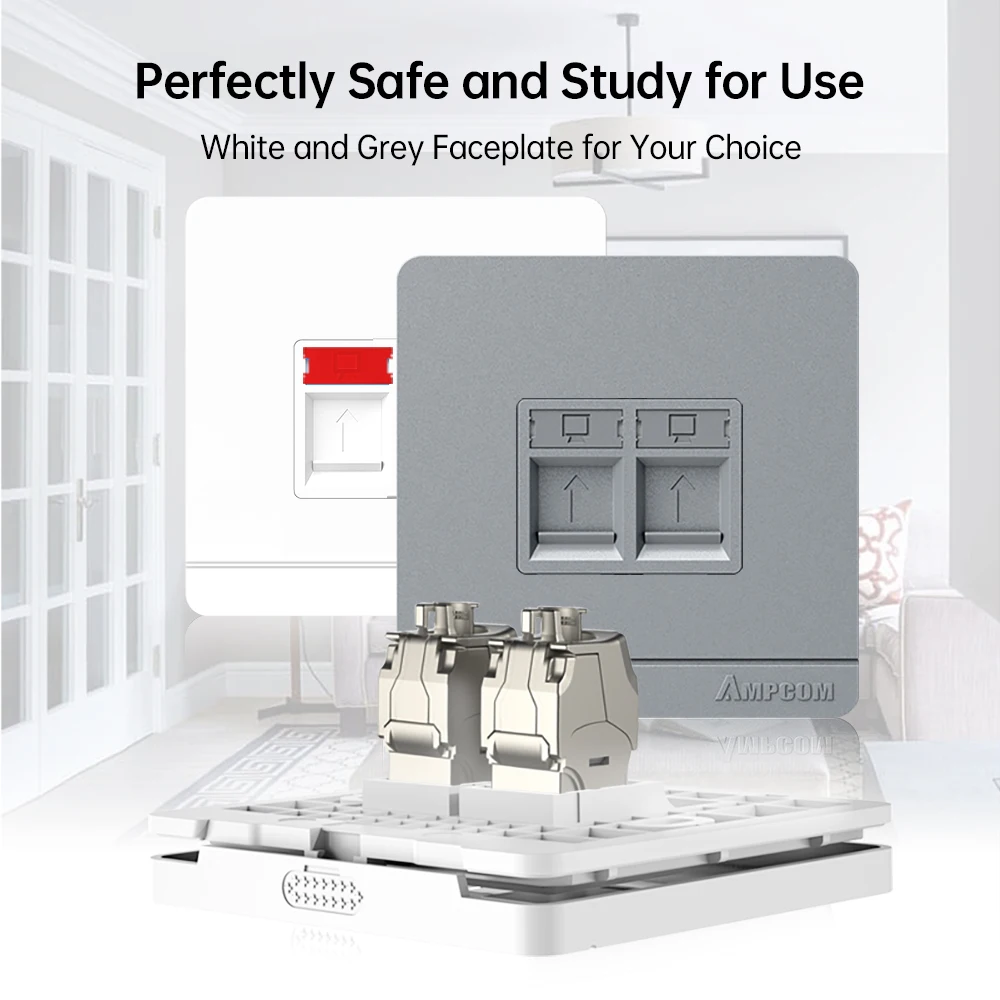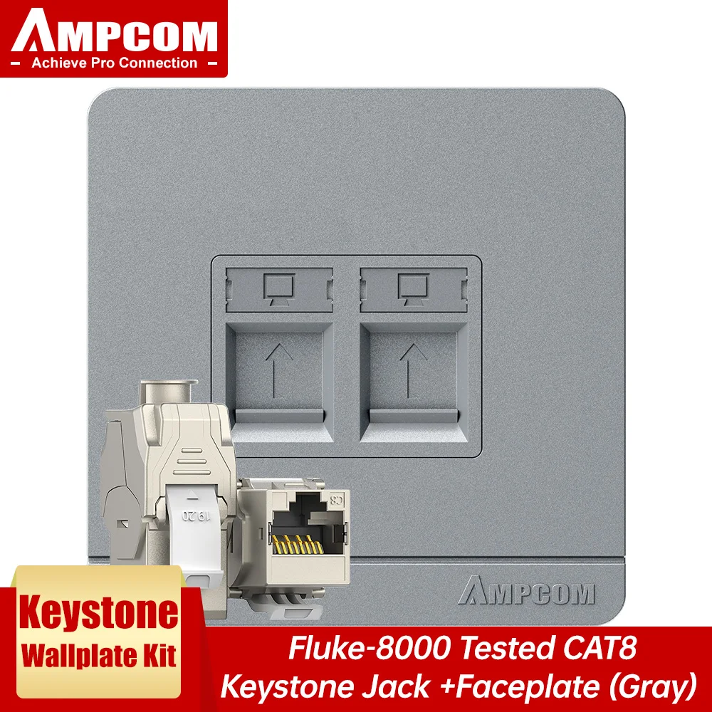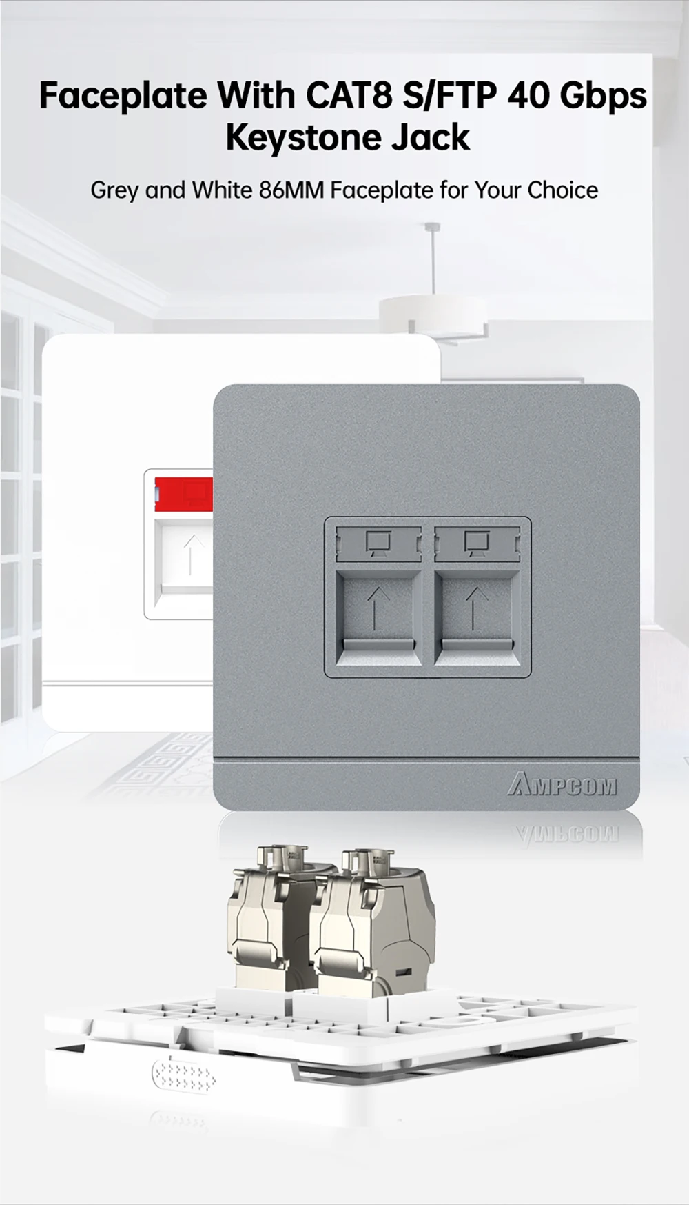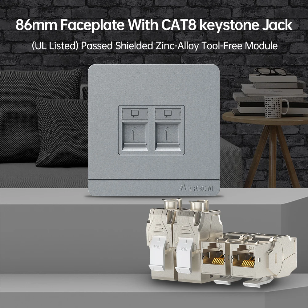 Comprar Placa frontal de pared AMPCOM con conector Keystone STP CAT8 de 40 Gbps, módulo de aleación de zinc autoblocante RJ45 con placa de pared de 86 mm