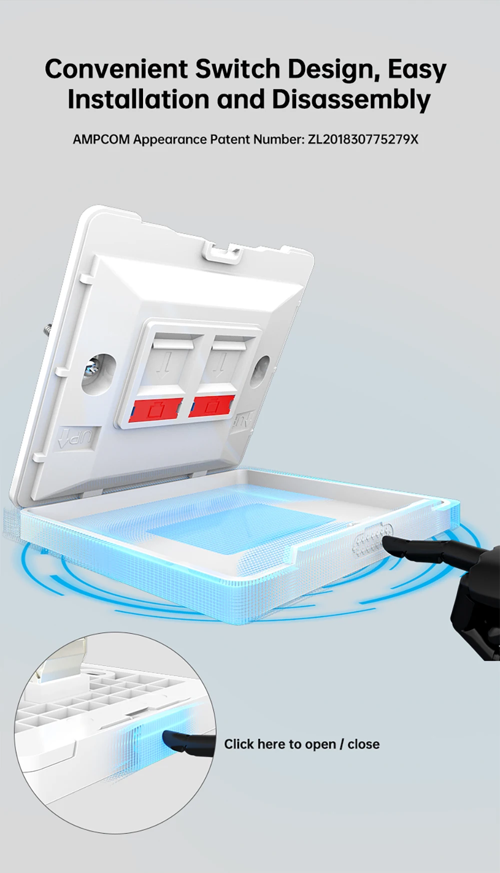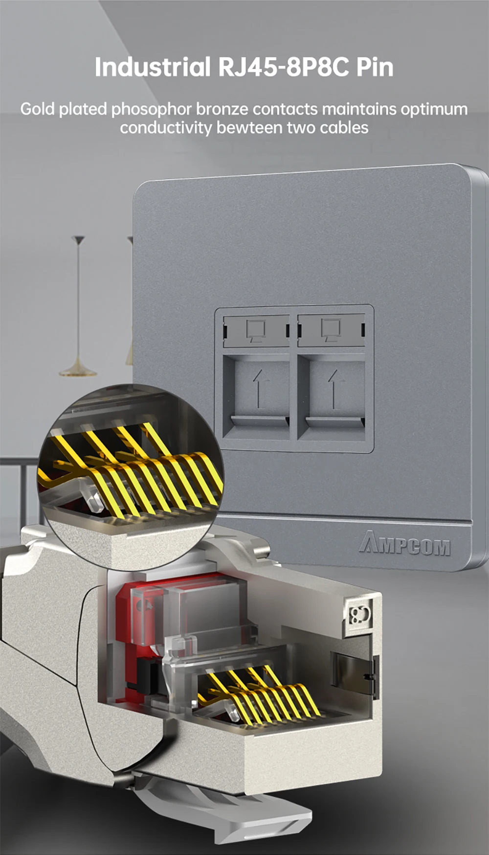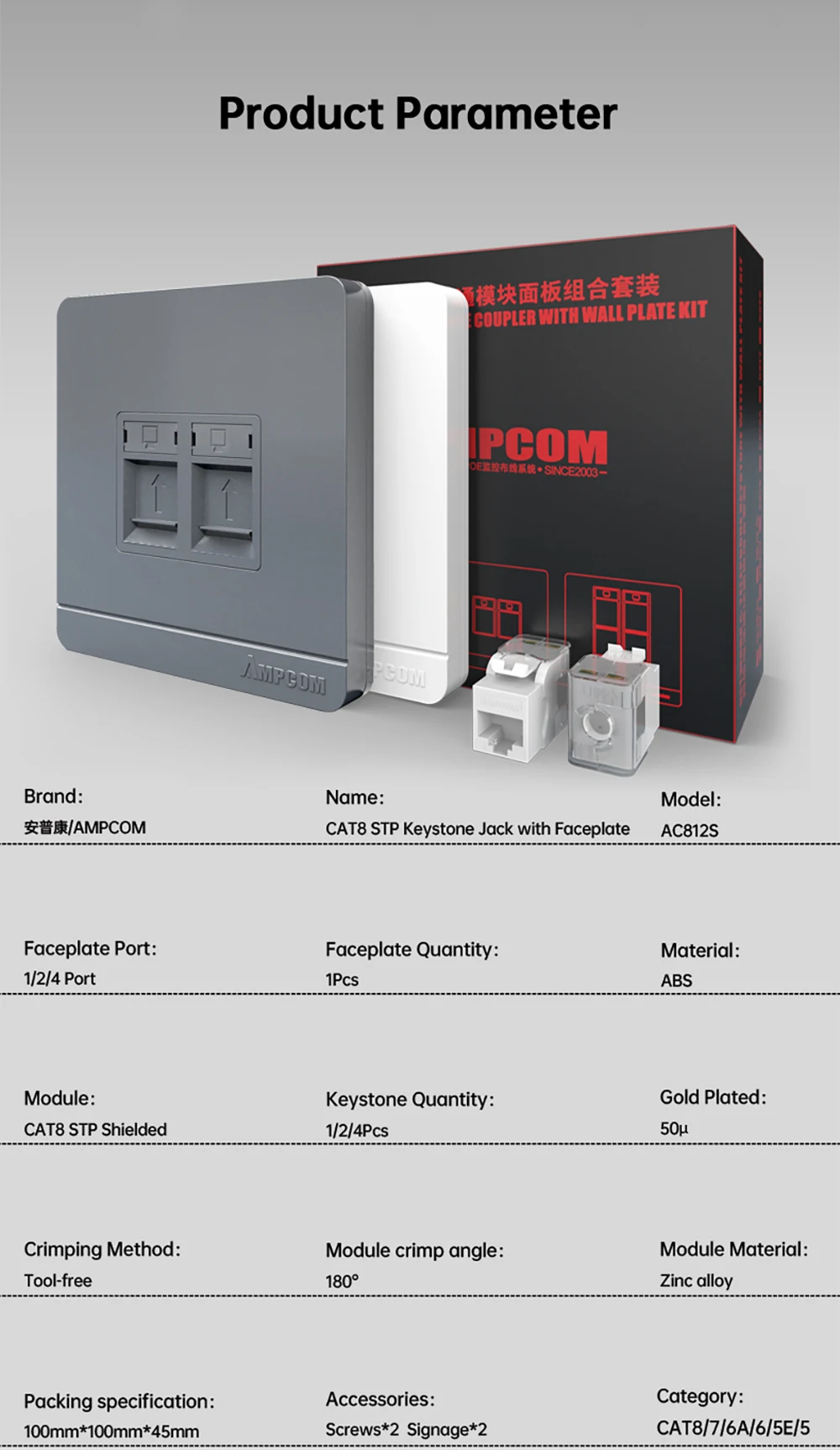 Comprar Placa frontal de pared AMPCOM con conector Keystone STP CAT8 de 40 Gbps, módulo de aleación de zinc autoblocante RJ45 con placa de pared de 86 mm