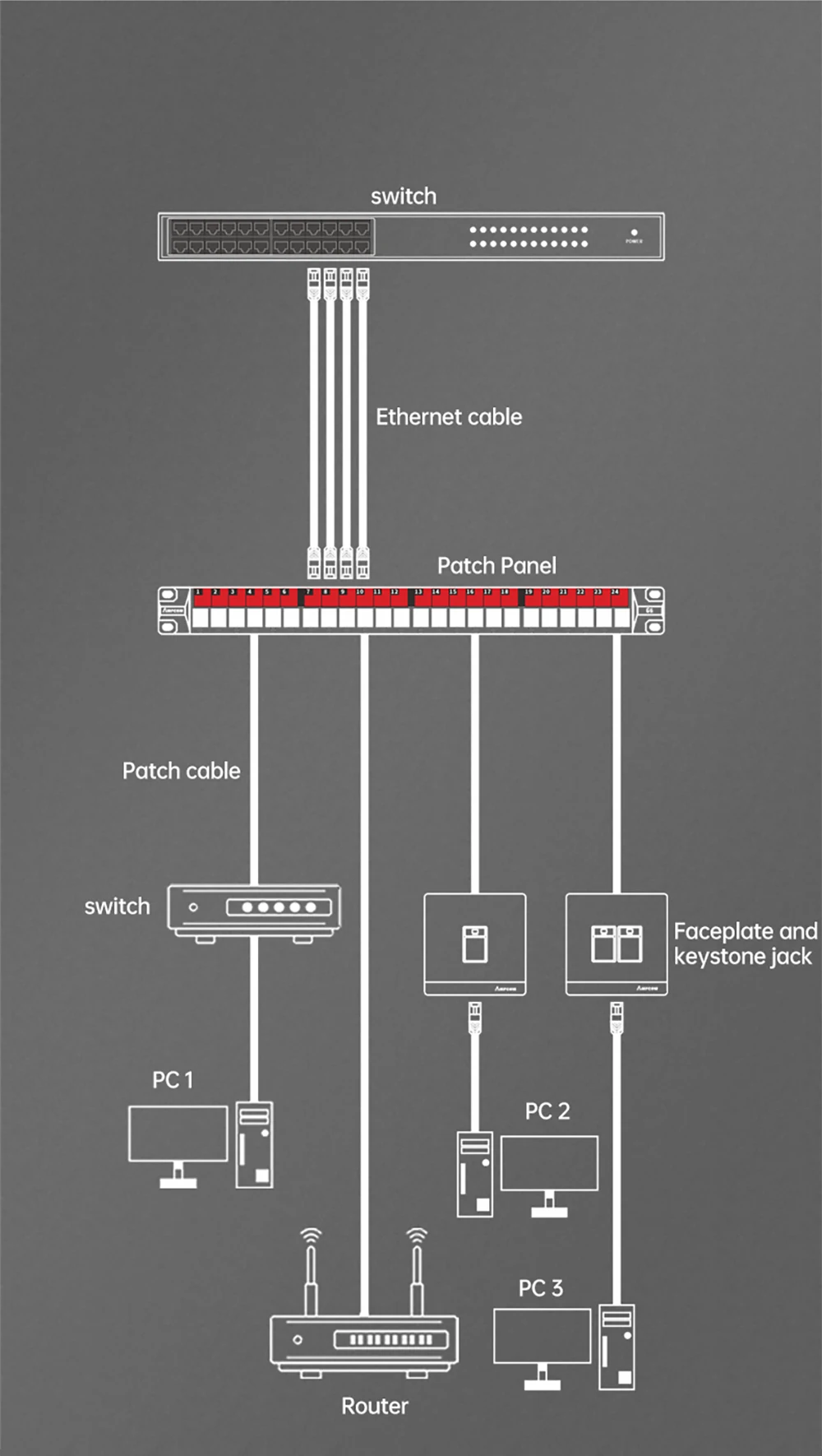 4.Admite cableado T568A y T568B con 110 bloques codificados por colores.Admite terminación de doble tipo 110 o Krone y acepta cables de conexión Ethernet sólidos de 22 o 26 AWG