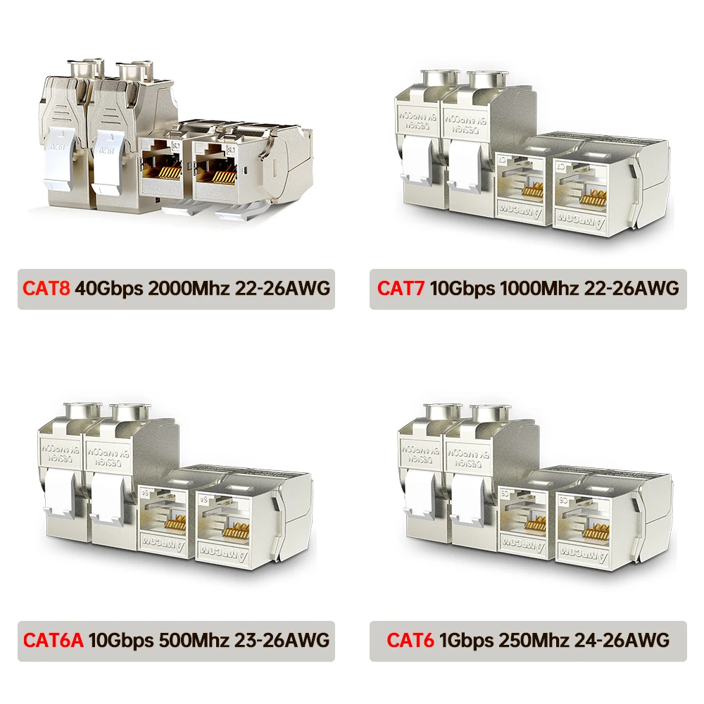 Conector Keystone CAT8: Cable Ethernet de 40 Gbps 2000 Mhz 22-26 AWG