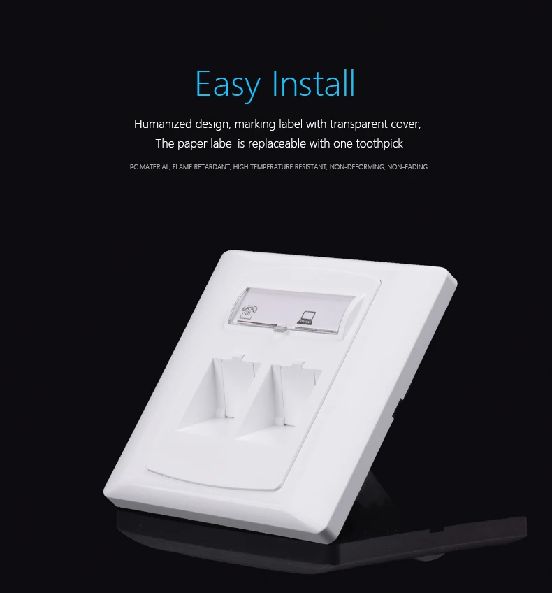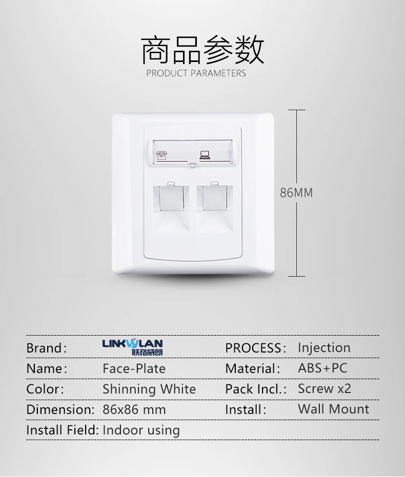 Placa frontal de pared de red de 86x86mm, 1 puerto, salidas de pared, Ethernet, 2 puertos, placa de pared Modular adecuada para caja inferior de 80x80mm